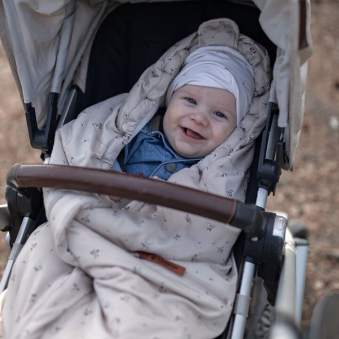 Materialet i Lyng åkpåsen är valda med noggrann eftertänksamhet så att den är mjuk och behagligt mot barnets hud, den är också en öppning i ryggen vilket gör att den fungerar ihop med alla barnvagnarna och cykelvagnarna på marknaden.