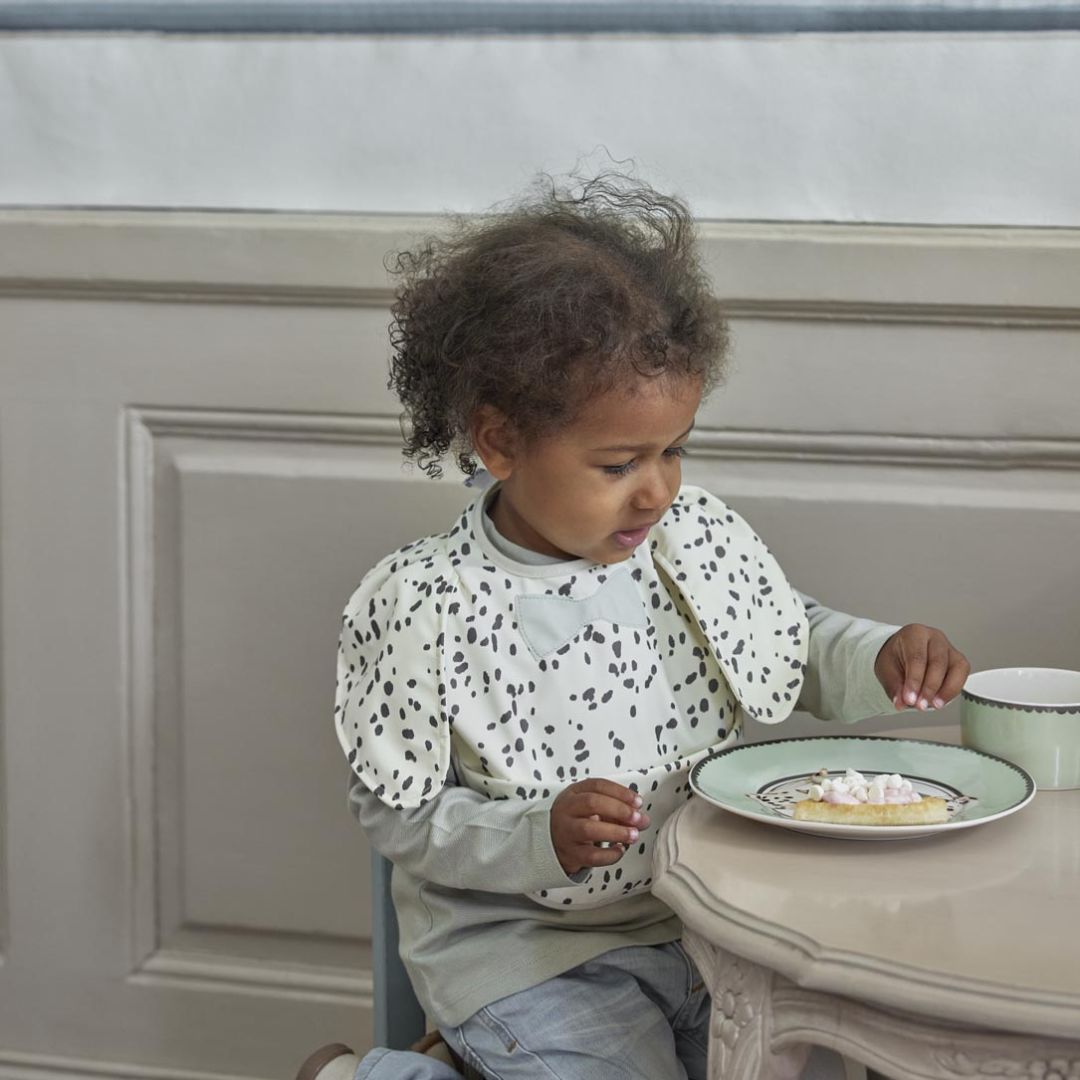 Tack vare sitt OEKO-TEX®-certifierade och snabbtorkande material, tillsammans med den optimala passformen och höga funktionaliteten, är det enkelt att förstå dess popularitet. Efter varje användning behöver du bara torka eller skölja av haklappen, så är den redo att användas igen på nolltid. Den generösa designen täcker både axlar och bröst, och den rymliga, flexibla uppsamlingsfickan fångar upp allt spill, vilket även hjälper till att hålla golvet rent. Med ett mjukt, justerbart kardborrefäste i nacken kan storleken enkelt anpassas, vilket gör haklappen lämplig även för äldre barn. Den passar bra från cirka 5 månaders ålder och är en fantastisk produkt fylld med smarta funktioner som förenklar livet med små barn.