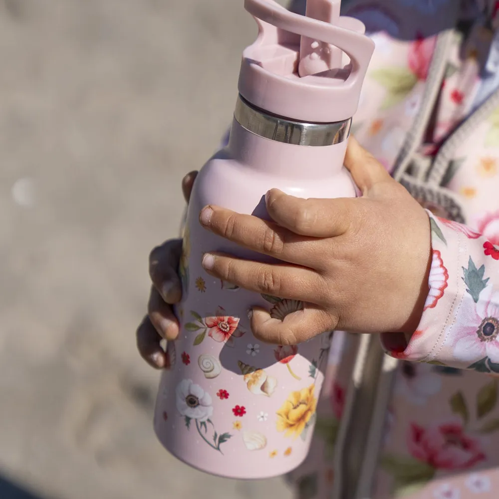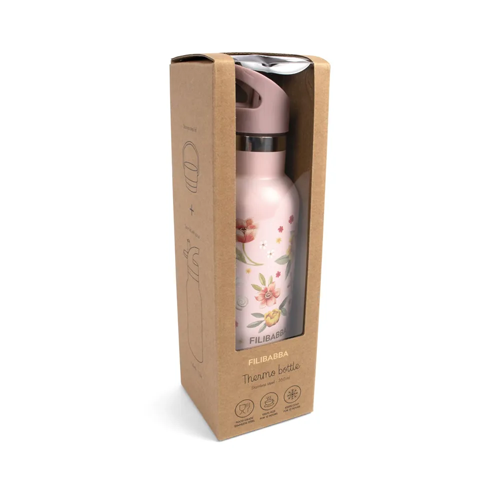 Filibabbas termorflaska erbjuder både ett traditionellt skruvlock och ett lock med inbyggt sugrör, vilket gör den idealisk för barnets alla äventyr. Tillverkad av rostfritt stål, garanterar den att din dryck behåller sin temperatur under lång tid. Termosflaskan är elegant designad med ett lekfullt motiv. För att förlänga flaskans livslängd rekommenderas handdisk.