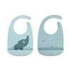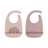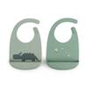 Fina haklappar i silikon som har en ficka framtill för att fånga upp spill och smulor. Haklapparna har en justerbar nackrem som kan ställas in efter önskemål och är enkel att hålla ren