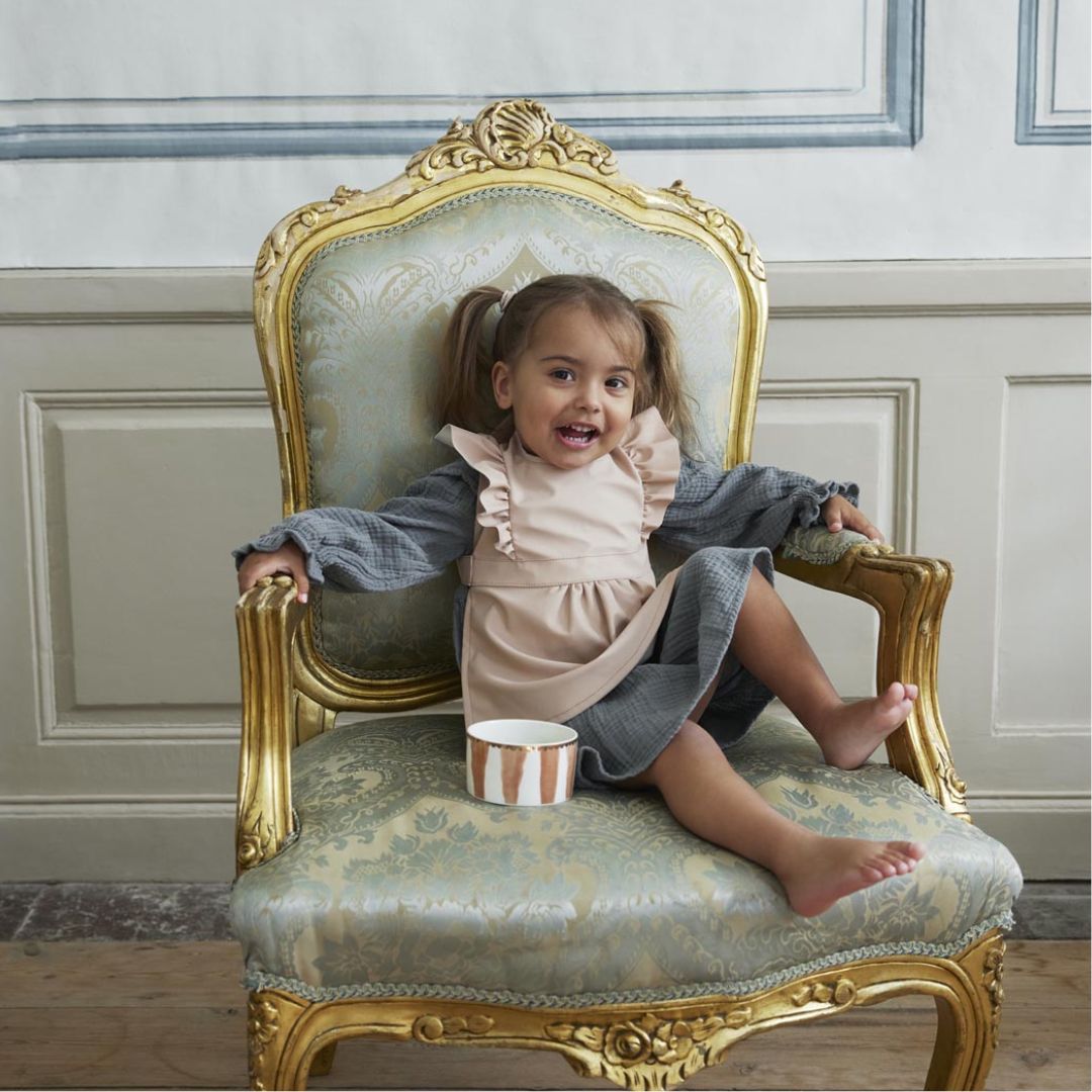 Denna haklapp/förkläde från Elodie blir snabbt en favorit vid högtider som kalas när man vill skydda sina finkläder med ännu ett fint förkläde. Barnet kommer troligtvis vilja ha förkläde mer än vid kalastillfällen med detta fina förkläde/haklapp.