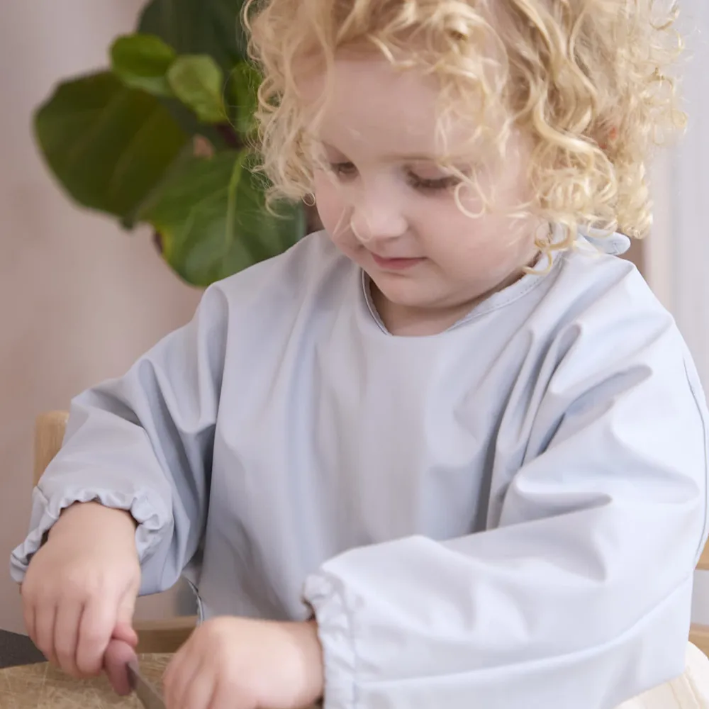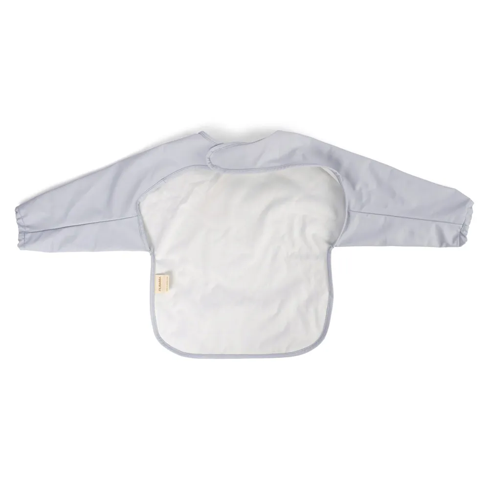 Filibabbas vackra haklapp med ärmar är den perfekta följeslagaren vid måltider. Med en generös ficka i botten fångar haklappen upp mat och vätska, och den justerbara resåren vid handlederna tillsammans med kardborreknäppningen i nacken säkerställer en perfekt passform för ditt barn. Den mjuka ytan gör haklappen både bekväm att bära och enkel att rengöra.