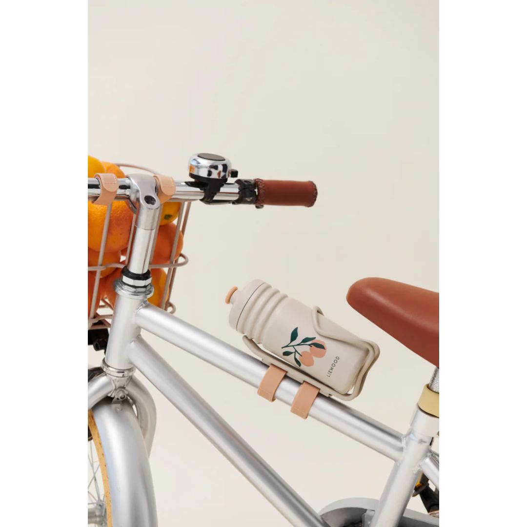 Liewood Lionel Statement vattenflaska med persikomotiv är en charmig och praktisk följeslagare för barn på språng. Perfekt för skolväskan, cykelturen eller utflykten håller den drycken sval och fräsch hela dagen. Den mjuka, livsmedelsgodkända polyetenflaskan är enkel att greppa för små händer, medan den smidiga drickpipen gör det lätt att dricka utan spill.