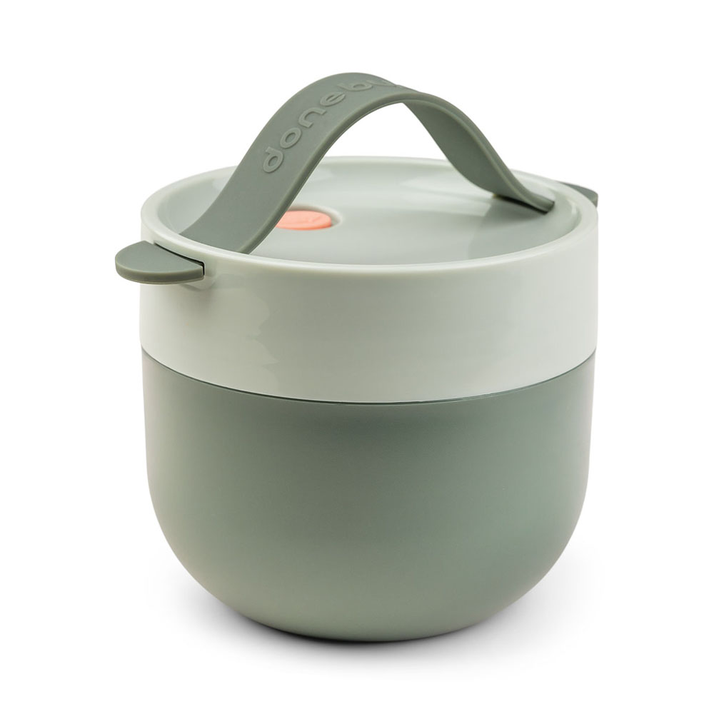 Denna praktiska matlåda är perfekt för hela familjen. Ta med den på en trevlig picknick, använd den för dig själv på en promenad med vagnen eller fyll den med din familjs favoritmåltid för en picknick. Matlådan att ta med har en ren design i moderna färger. Ett skruvlock håller godsakerna på plats. Det avtagbara silikonhandtaget gör det enkelt för små händer att bära matlådan. Den gröna matlådan att ta med är mikrovågsugn- och diskmaskinssäker och passar perfekt med våra isolerade väskor för att hålla maten sval.
