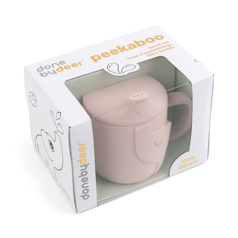 Den Peekaboo-spout-koppen är en perfekt 2-i-1-kopp för att öva på de första klunkarna. Det praktiska spout-locket håller städningen till ett minimum. När din lilla är redo kan spout-locket tas av och den tvåhandsgreppade koppen kommer att säkra ett stadigt grepp. Den söta Elphee-sippy-koppen är gjord av livsmedelssilikon, vilket gör den okrossbar och lägger till lättgreppsfunktioner. Diskmaskinssäker och lämplig för användning i ugn, mikrovågsugn och frys. Elphee poppar ut ur pulverträningskoppen och skvätter vattendroppar. En utmärkt tillbehör för barnvagnen, bilen eller en rolig resa till lekplatsen.