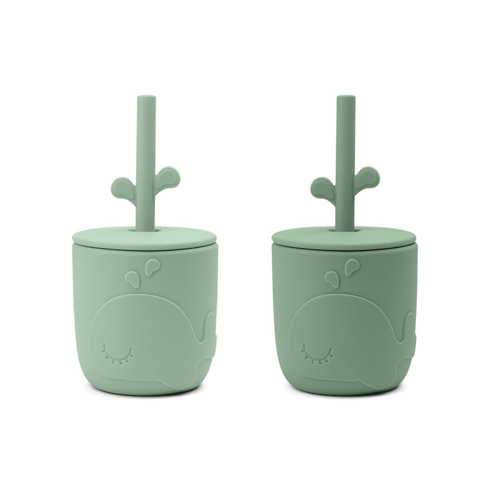 De Peekaboo sugrörskopparna har den perfekta storleken för små händer att hålla i. Wally poppar upp ur den roliga koppen och skvätter vattendroppar på sugröret. Ett praktiskt lock hjälper till att hålla drycker inne och sugröret på plats, vilket gör det lättare för små barn att använda. De söta Wally träningskopparna är tillverkade av livsmedelssilikon, vilket gör dem stöttåliga och ger enkla greppfunktioner. Tål maskindisk och är lämpliga att använda i ugn, mikrovågsugn och frys. De 2-pack sugrörskopparna är i två nyanser av puder. De söta sugrören passar perfekt i alla små barns koppar utan att luta sig, och locken kan också användas för Peekaboo pipmuggen.
