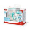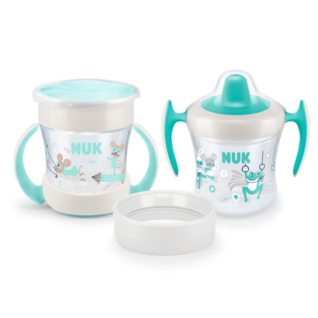 NUK Mini Trainer Cup underlättar övergången från flaska till mugg för barn från cirka 6 månader. Muggen har en mjuk pip som är skonsam mot gom och tandkött, är spillfri och har ergonomiskt formade handtag som är lätta för barnet att hålla i.