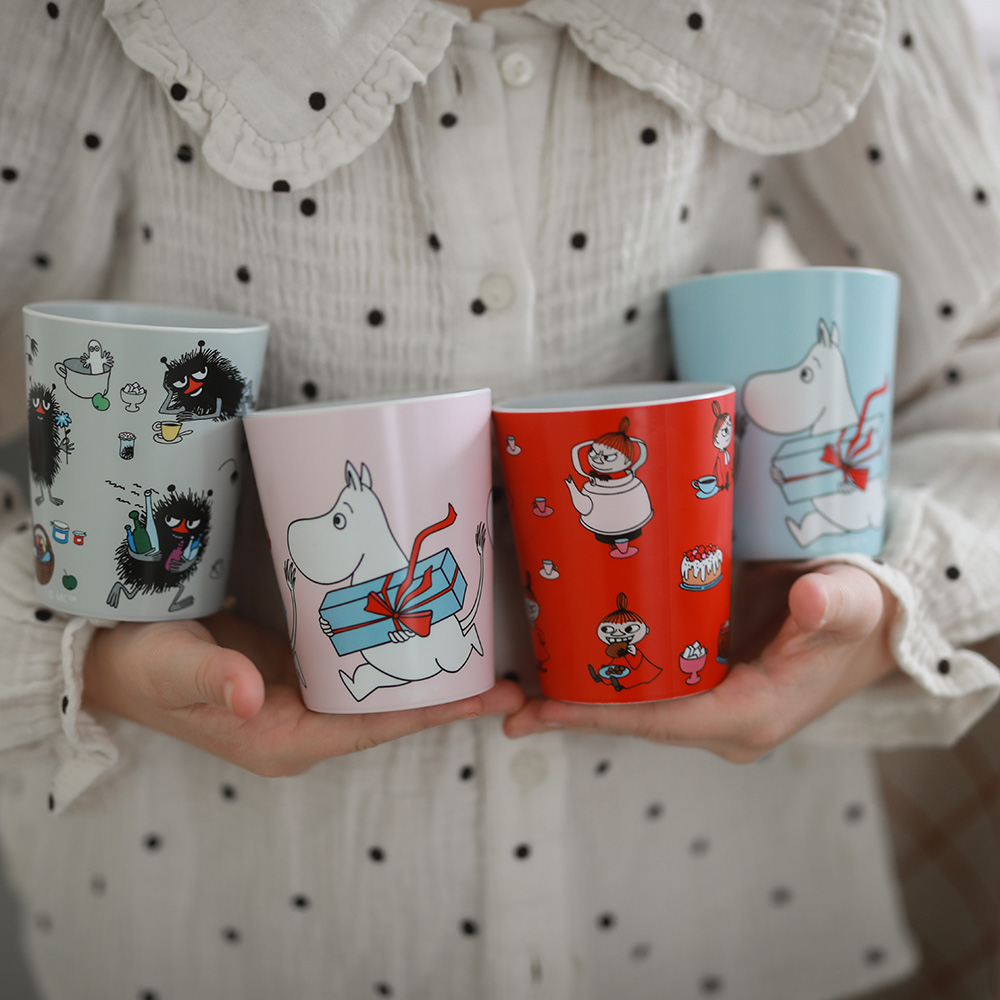 En liten mugg med stor personlighet! Denna söta mugg utan öra pryds av älskade Mumin-motiv och är perfekt för små händer att greppa. Tillverkad i miljövänligt RPET – ett återvunnet material som bidrar till en mer hållbar framtid – gör den varje klunk till ett medvetet val.