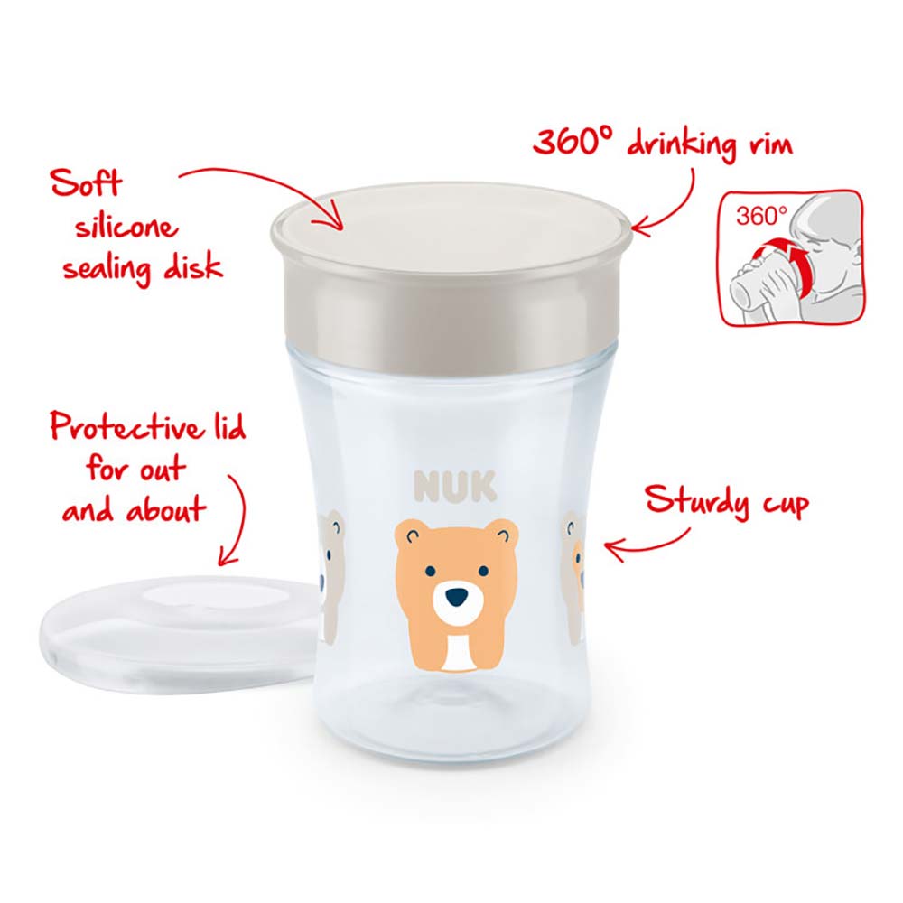 NUK Magic Cup har en fantastisk konstruktion som gör att barnet kan dricka från alla sidor av muggen, precis som ur ett dricksglas, utan spill.