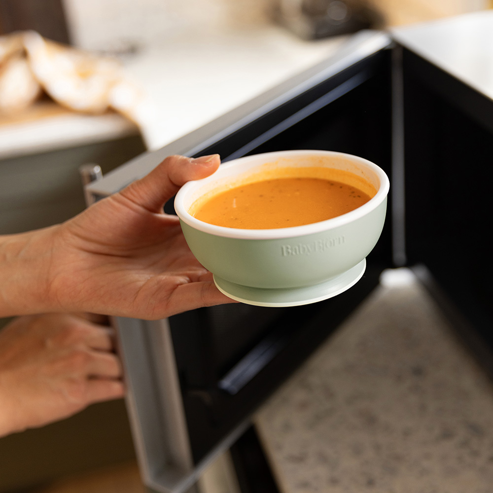 Tillverkad av BPA-fritt och PVC-fritt material, säker för både ditt barn och miljön. Skålen tål maskindisk och kan användas i mikrovågsugn, vilket gör den till ett smidigt och praktiskt val i vardagen.