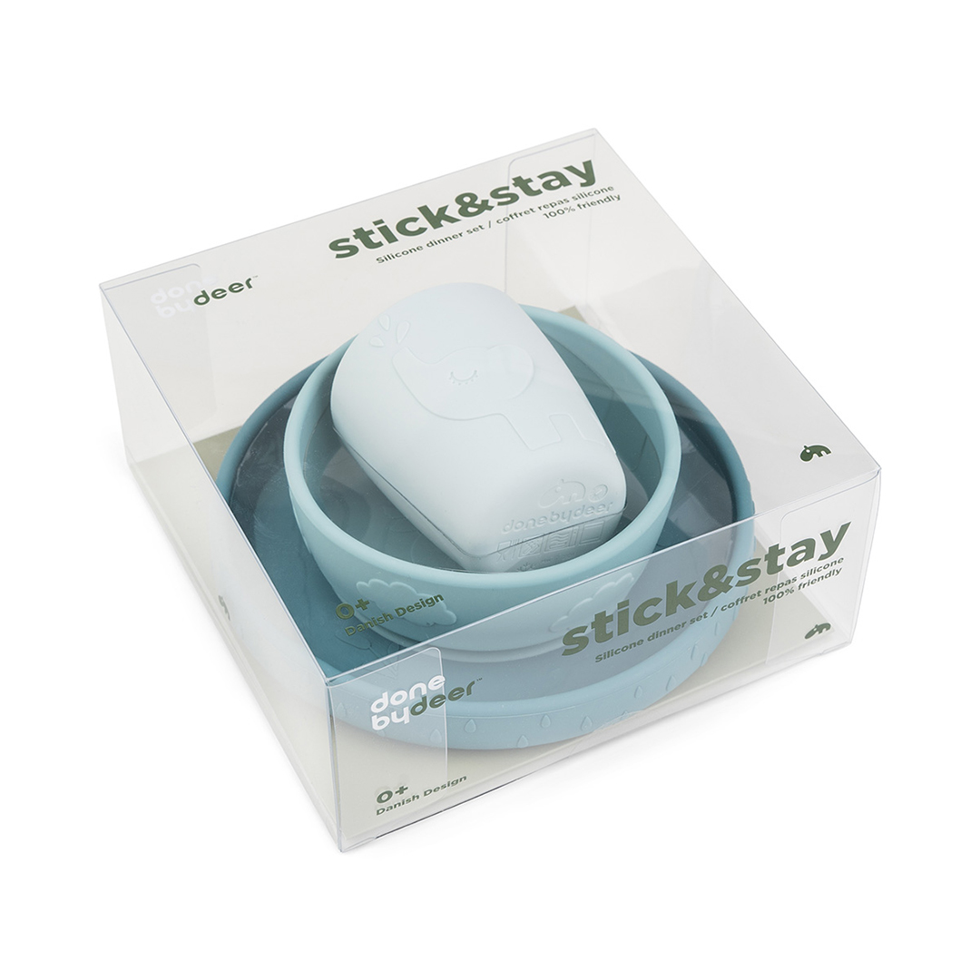 - Sugkoppar på tallriken och skålen håller servisen på plats under måltiden
