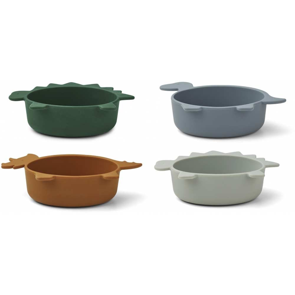 Ett 4-pack silikonskålar med olika färger och motiv och gör måltiden lite roligare! Skålarna är tillverkade av 100% silikon och är BPA-fria. Praktiska då de inte går sönder om de åker i golvet.