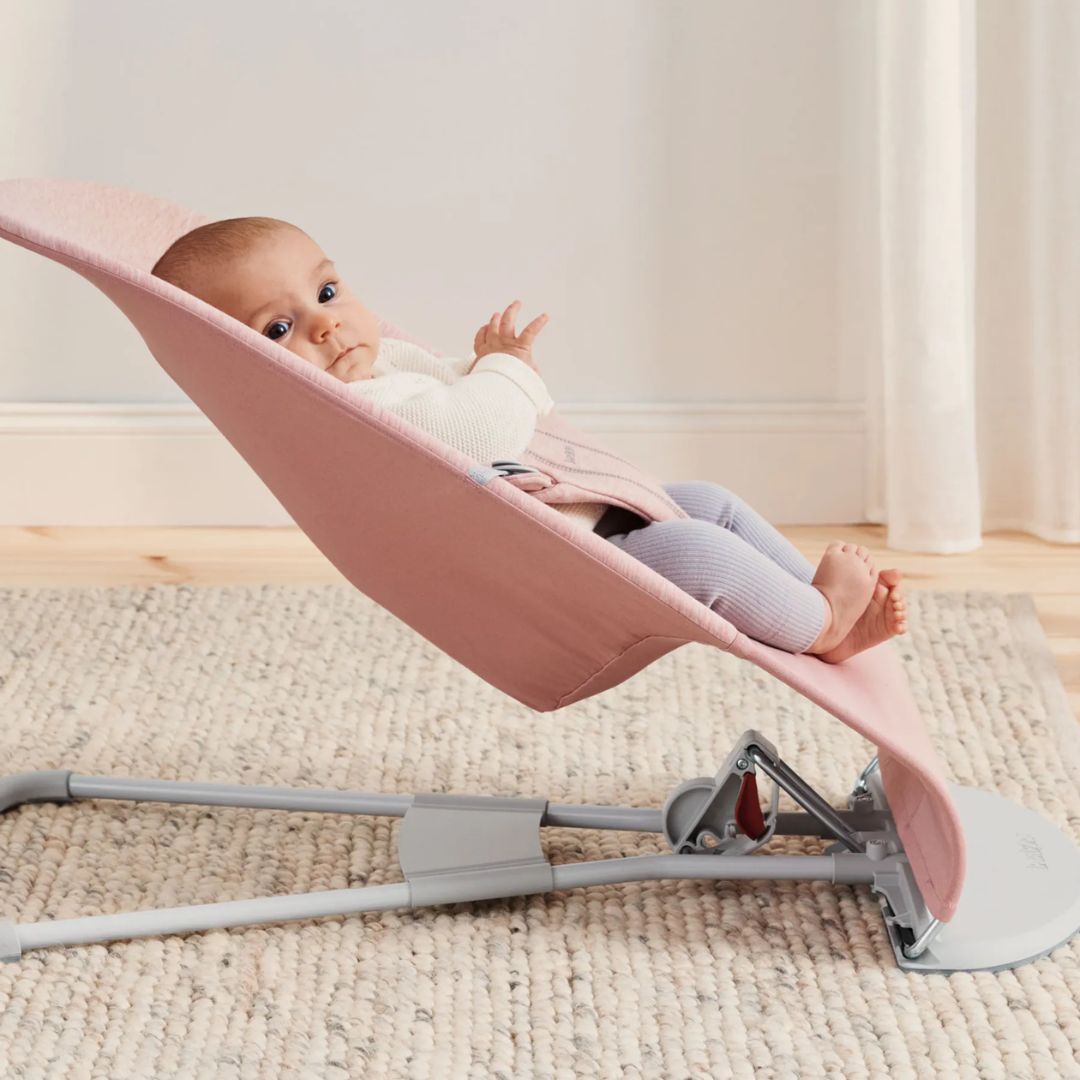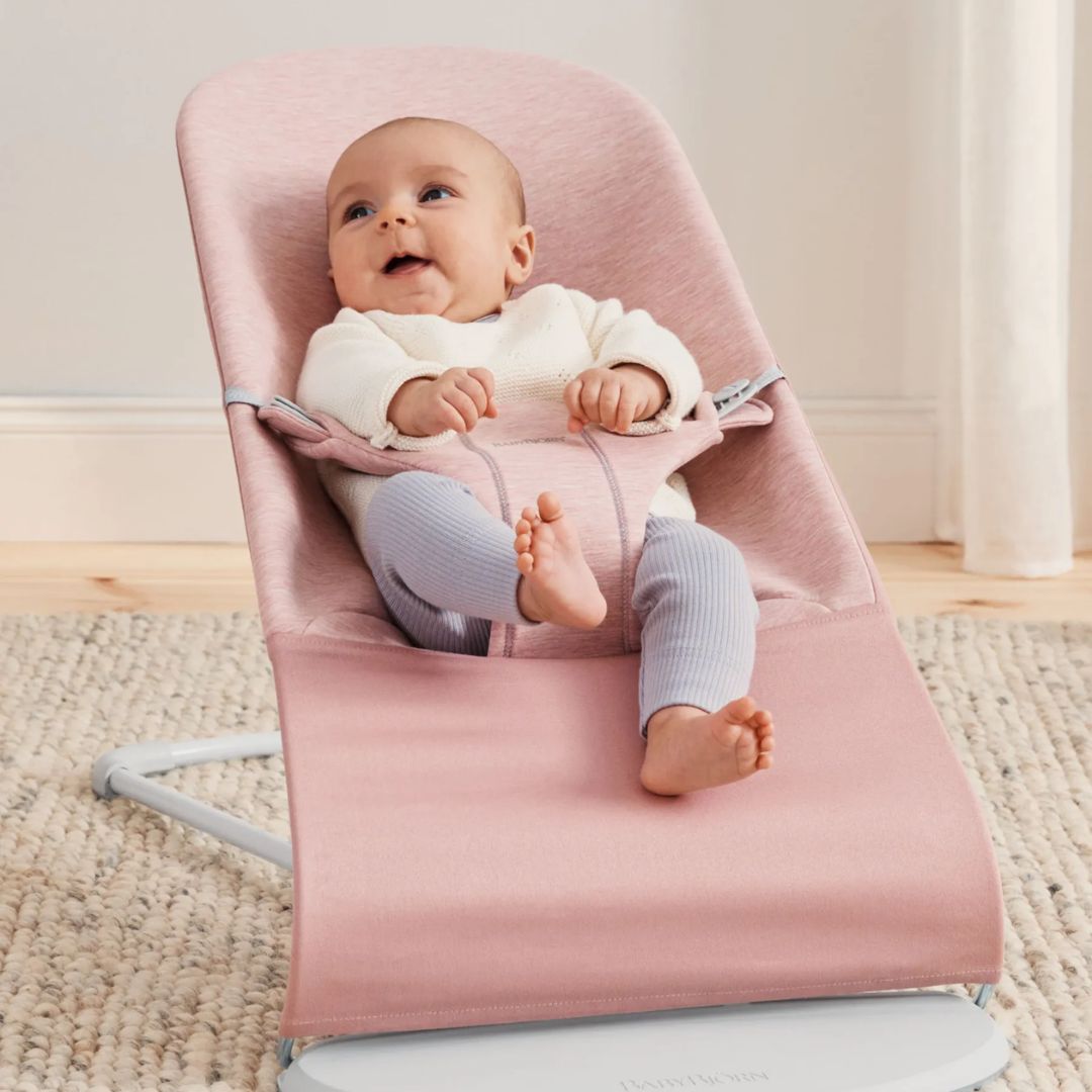 Babysittern Bliss är BabyBjörns klassiska babysitter i ny design. Bliss 3D Jersey har en bottenplatta och stomme i grå färg med en tygsits i supermjuk 3D jersey vilket ger en mjuk och skön känsla. Babysittern är ergonomiskt utformad, vilket gör att ditt barn sitter bra med ett bra stöd för rygg, nacke och huvud - med en jämn viktfördelning. Babybjörns babysitter är hopfällbar och har tre höjdlägen för sömn, lek och vila. Inga batterier behövs i BabyBjörn Bliss då babysittern sätts i gungning av dig eller ditt barns rörelser. Babysittern väger också lite och är superenkel att ta med.