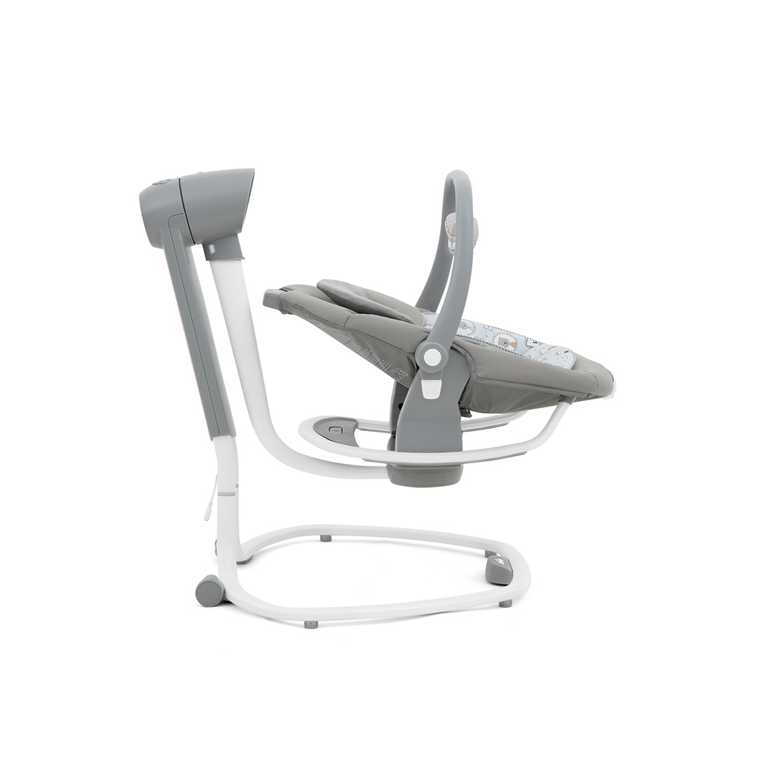 - 6 svänghastigheter för anpassad komfort. 2 hjul och integrerat handtag gör sittern enkel att förflytta