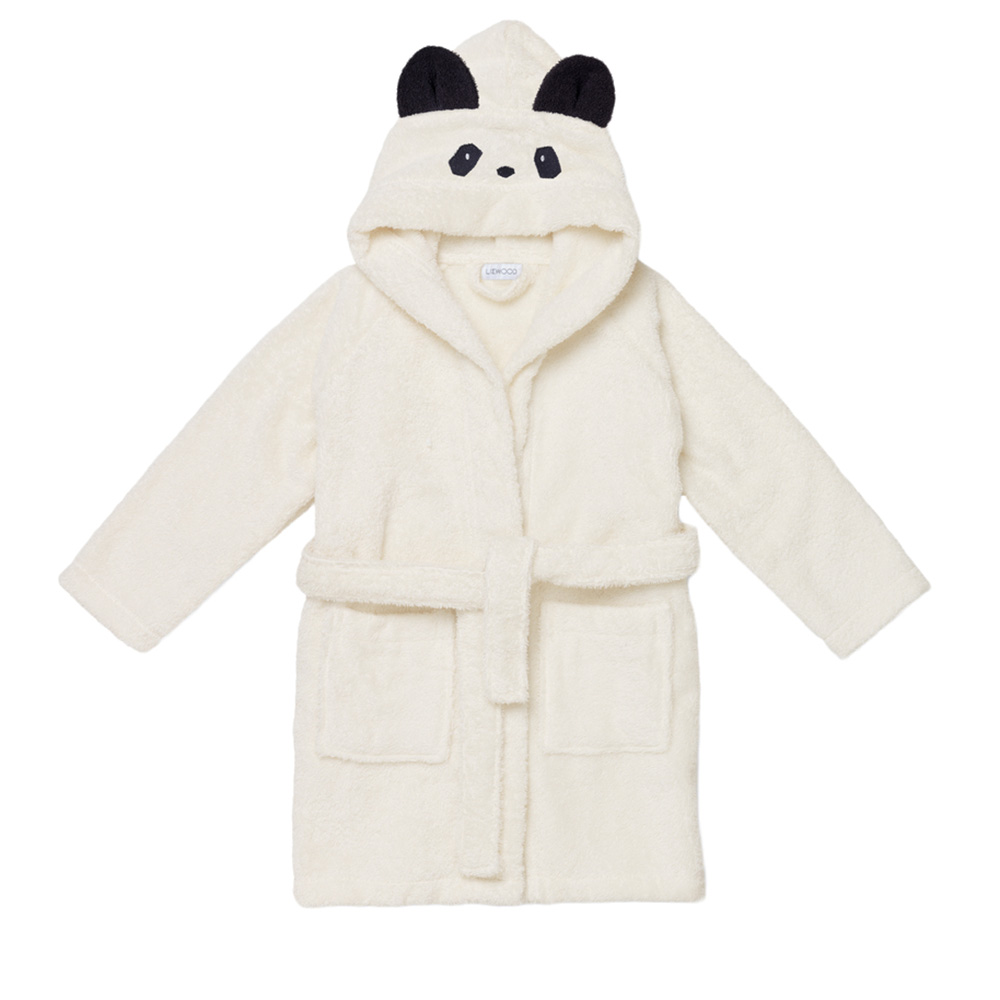 En gosig badrock i mjuk ekologisk bomull med lekfulla djurdetaljer och söta öron på huvan. Den täta frottékvaliteten gör badrocken både absorberande och varm, perfekt för att hålla ditt barn torrt och bekvämt efter badet. Praktiska tryckknappar framtill och ett knytband ser till att badrocken sitter på plats. Den charmiga designen med broderade detaljer och öron på huvan gör badstunden ännu mysigare. Tillverkad av GOTS-certifierad ekologisk bomull som är skonsam mot ditt barns hud.