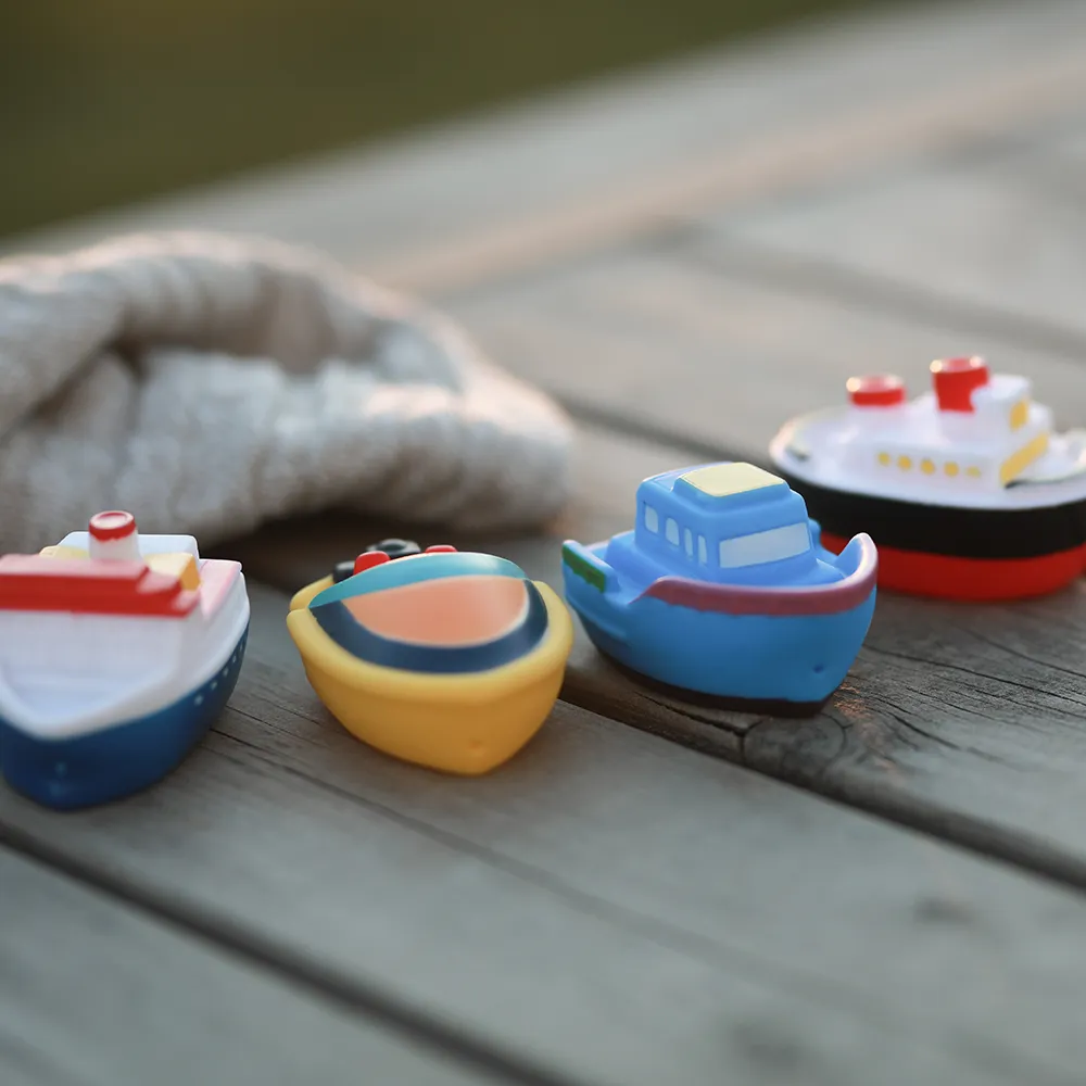 Ta med de gulliga och lekfulla badleksakerna till badet. Dessa badleksaker är färgglada och tillverkade utan hål, vilket säkerställer en mögelfri badupplevelse. Plasten som används är helt fri från skadliga mjukgörare och ftalater.