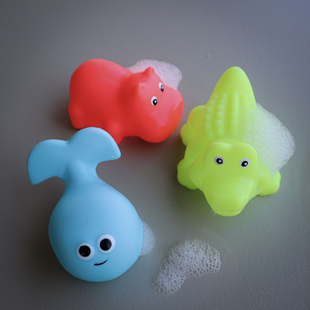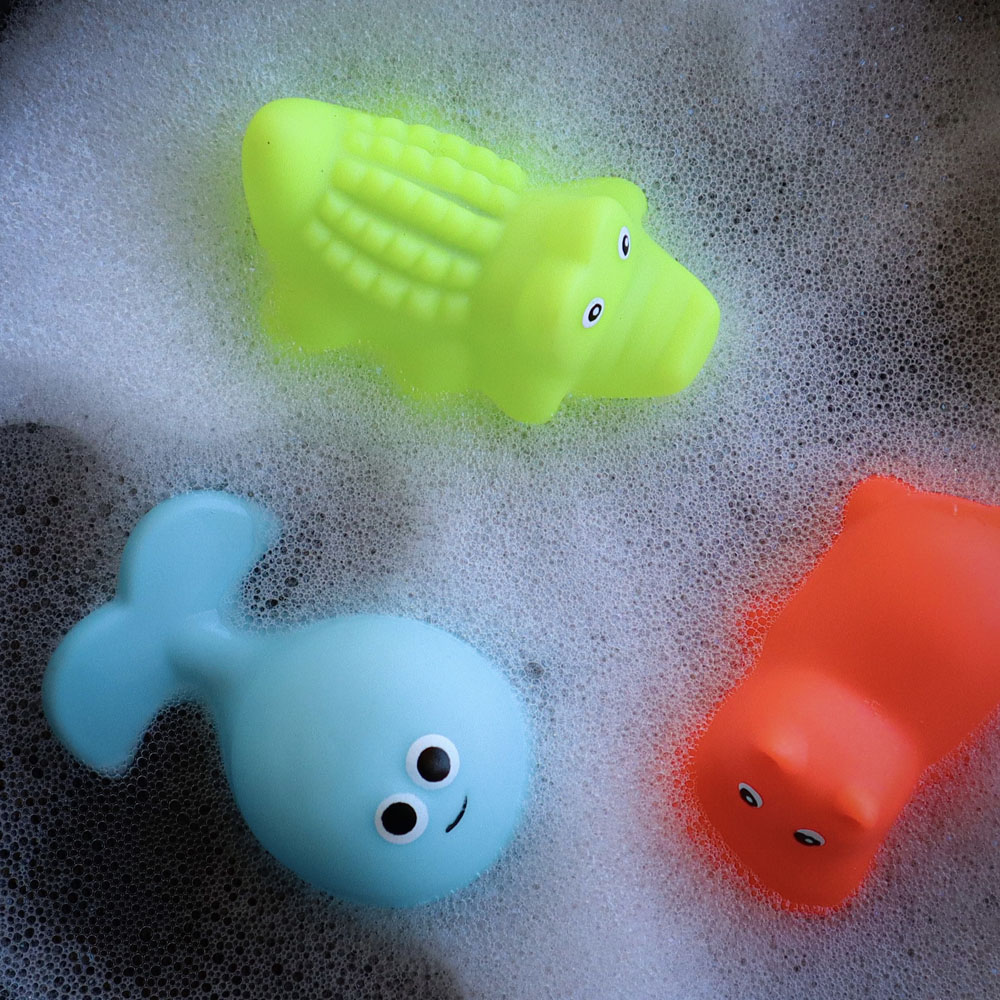 Ta med de gulliga och lekfulla badleksakerna till badet. Dessa badleksaker är färgglada och tillverkade utan hål, vilket säkerställer en mögelfri badupplevelse. Plasten som används är helt fri från skadliga mjukgörare och ftalater.