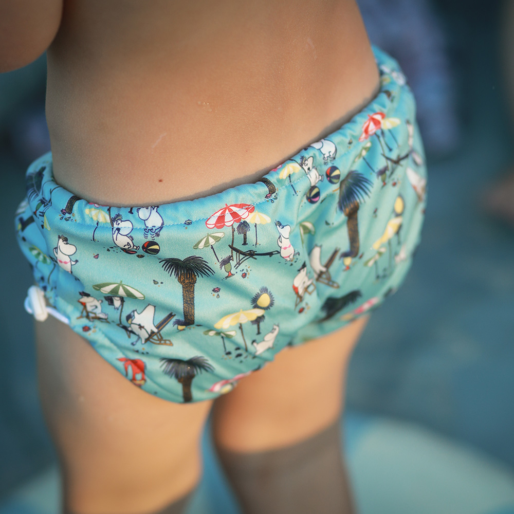 Gör strand- och pooldagarna både säkra och stilfulla med denna charmiga UV-badblöja med Muminmotiv! Perfekt för små äventyrare som vill plaska och leka i solen. Badblöjan har en bekväm passform med justerbara dragskor i midjan och vid benöppningarna, vilket ger både rörelsefrihet och ett bra skydd.