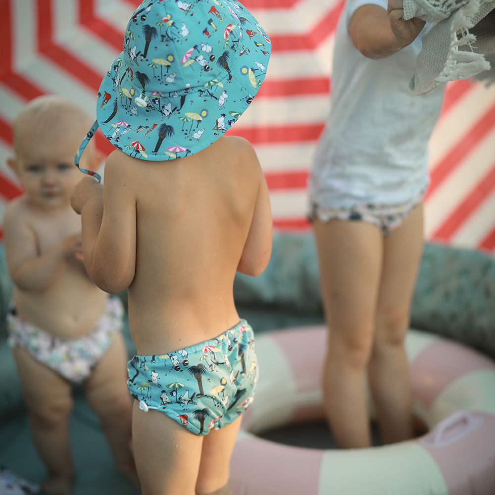 Gör strand- och pooldagarna både säkra och stilfulla med denna charmiga UV-badblöja med Muminmotiv! Perfekt för små äventyrare som vill plaska och leka i solen. Badblöjan har en bekväm passform med justerbara dragskor i midjan och vid benöppningarna, vilket ger både rörelsefrihet och ett bra skydd.