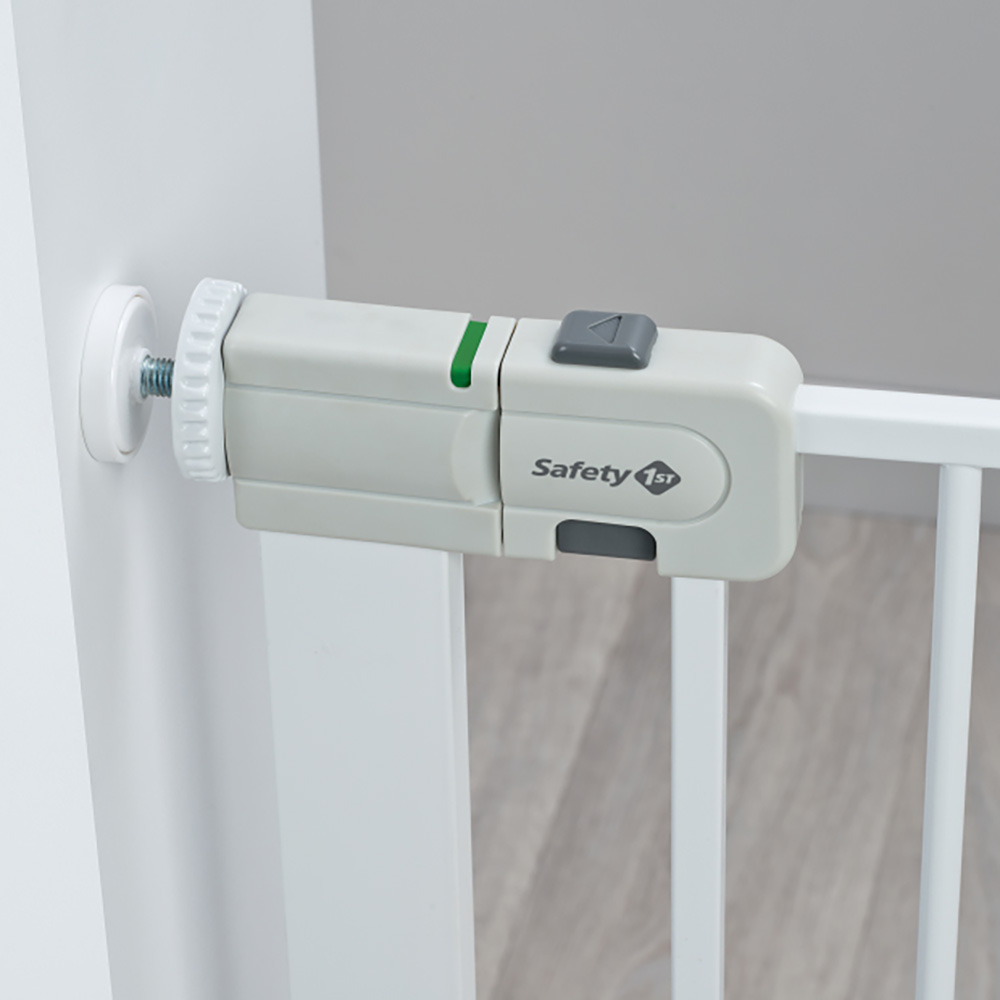 Safety 1st Easy Close Metal är den perfekta kombinationen av enkelhet och trygghet i en stilren säkerhetsgrind. Med sin U-formade design och tryckmontering installeras den smidigt utan att skada väggarna – perfekt för både trappor och dörröppningar. Den innovativa SecureTech®-indikatorn visar tydligt när grinden är korrekt stängd och säkert på plats, så att du alltid kan känna dig trygg.