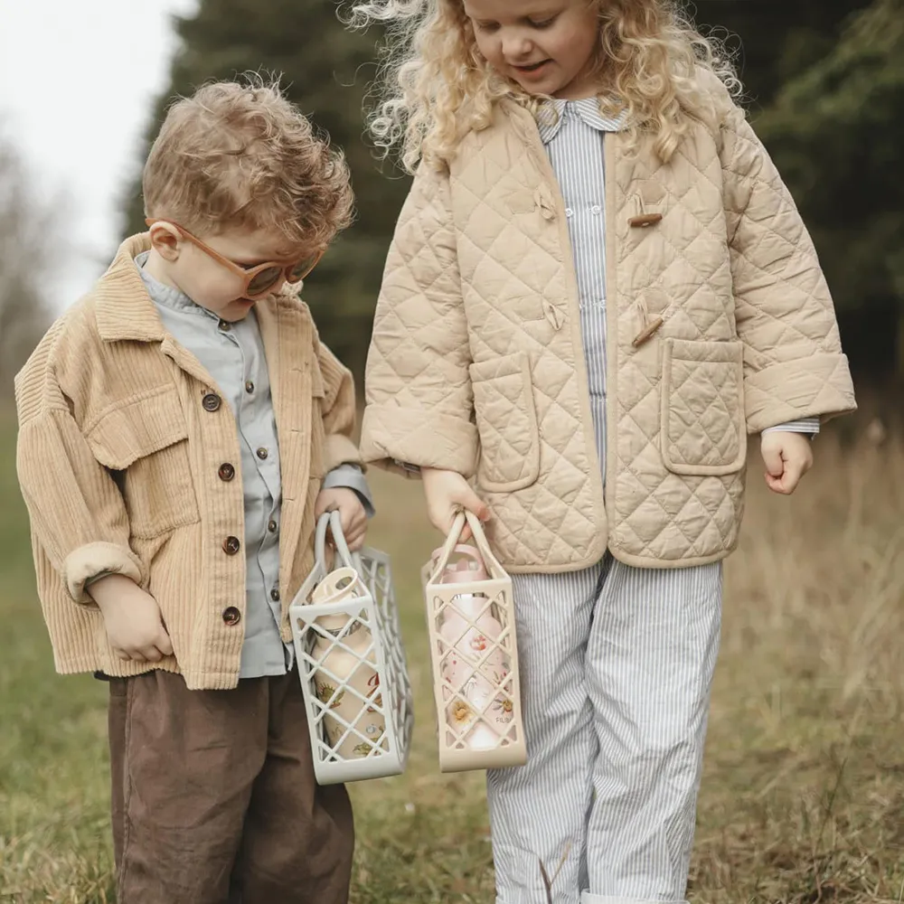 Gör strandutflykterna ännu roligare med den här praktiska väskan som låter barnen packa sina favoritleksaker själva! Den är idealisk för att bära sandleksaker, uppsamlade stenar eller till och med blöta badkläder. När det är dags att städa av leksakerna är det bara att doppa väskan i vatten för en enkel och snabb rengöring.