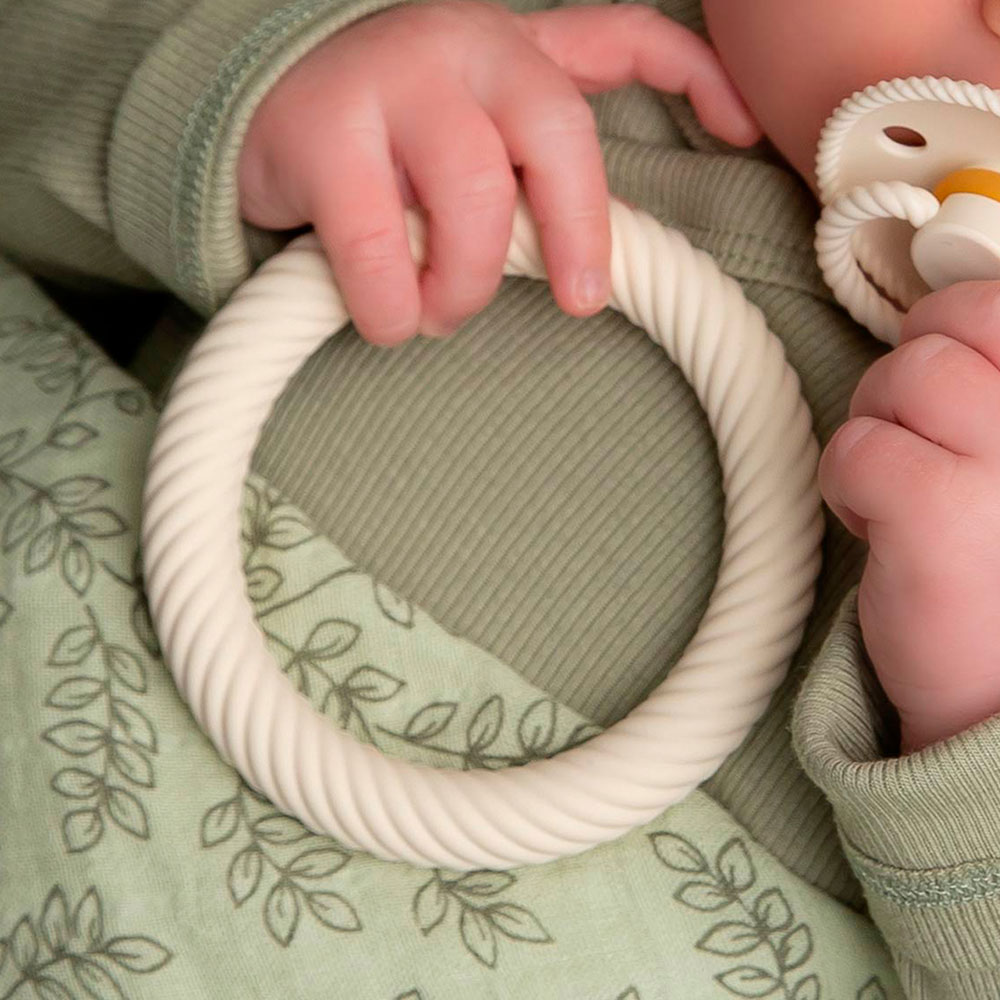 Specifikationer Mått: 8,5 x 8,5 x 1,2 cm Vikt: 68 g Antal: set med 2 silikonbitar Material: livsmedelsklassat silikon Fri från PVC, BPA, ftalater och nitrosaminer Alla bitringar uppfyller teststandarder: EN71 (1, 2 & 3), REACH och CPSC Skötsel: Tvätta i varmt tvålvatten och låt lufttorka.