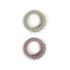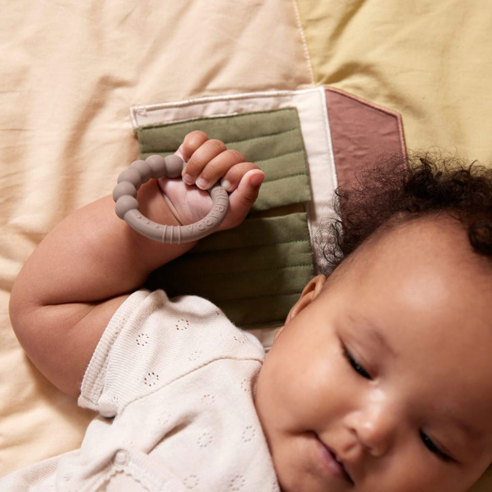 När ditt barn får tänder är silikonbitar ett måste för att lugna barnets ömma tandkött. Bitringarna är utformade med spännande texturer och former som stimulerar både mun och händer. Ringformen med textur gör det lätt för barnet att greppa och hålla i ringen. Du kan även uppnå en kylande effekt genom att placera bitringarna i kylskåpet. Av säkerhetsskäl bör du aldrig använda frysen för kylning.
