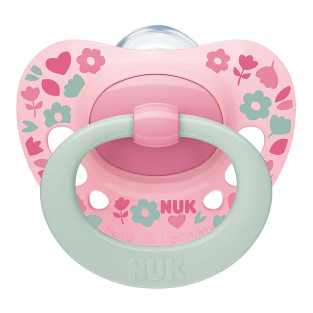 NUK Pacifier Signature är ergonomiskt utformade för att passa det lilla barnets anatomi. Tillverkad i mjuk silikon. NUK Air System gör att luft kan strömma fritt genom sugdelen.
