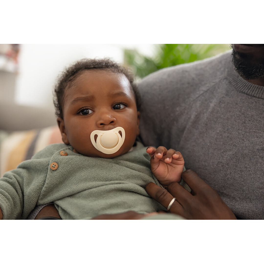 Pacifier NUK for Nature är en napp som består av mer än 98 % naturliga råvaror. För de fasta delarna används ekologiskt hållbar plast* och den mjuka nappen är gjord av rent naturgummi. En helt växtbaserad och förnybar råvara som är extra flexibel och känns mjuk och varm, likt mammas bröst. Det naturliga ursprunget är oberoende certifierat.
