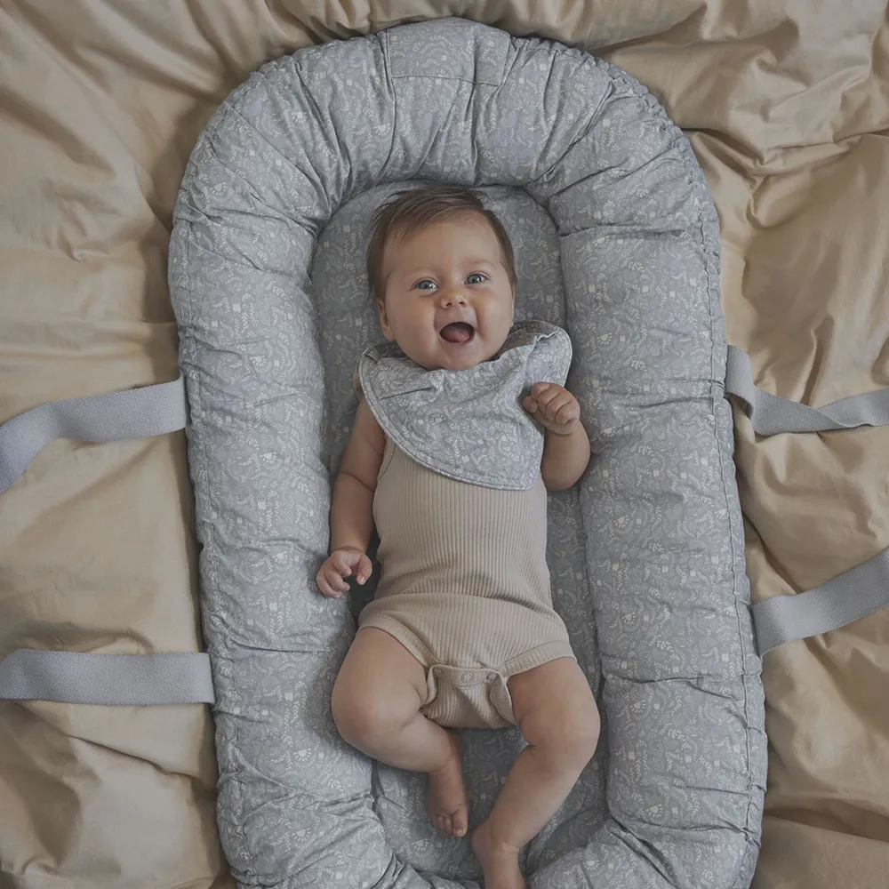 Elodie Details Baby Nest med handtag är den ultimata produkten för att skapa trygghet och närhet mellan din nyfödda och resten av familjen. Det är designat för att enkelt kunna flyttas från rum till rum, så att du alltid har din bebis nära och under uppsikt.