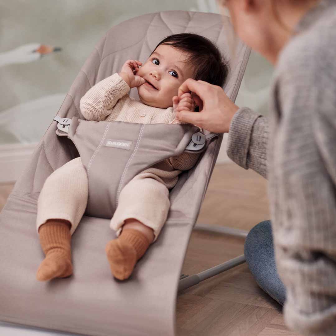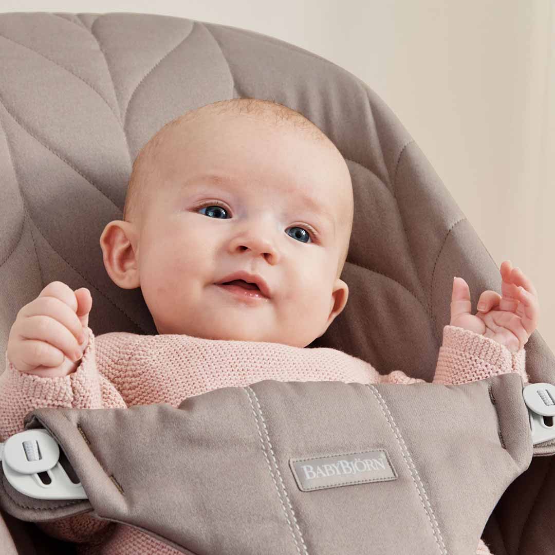 Babysittern Bliss är BabyBjörns klassiska babysitter i ny design. Bliss har en bottenplatta och stomme i grå med tygsits i vävd (består av 65% återvunnen polyester & 35% bomull), supermjuk 3D jersey eller luftig mesh vilket ger en mjuk och skön känsla. Babysittern är ergonomiskt utformad, vilket gör att ditt barn sitter bra med ett bra stöd för rygg, nacke och huvud - med en jämn viktfördelning.