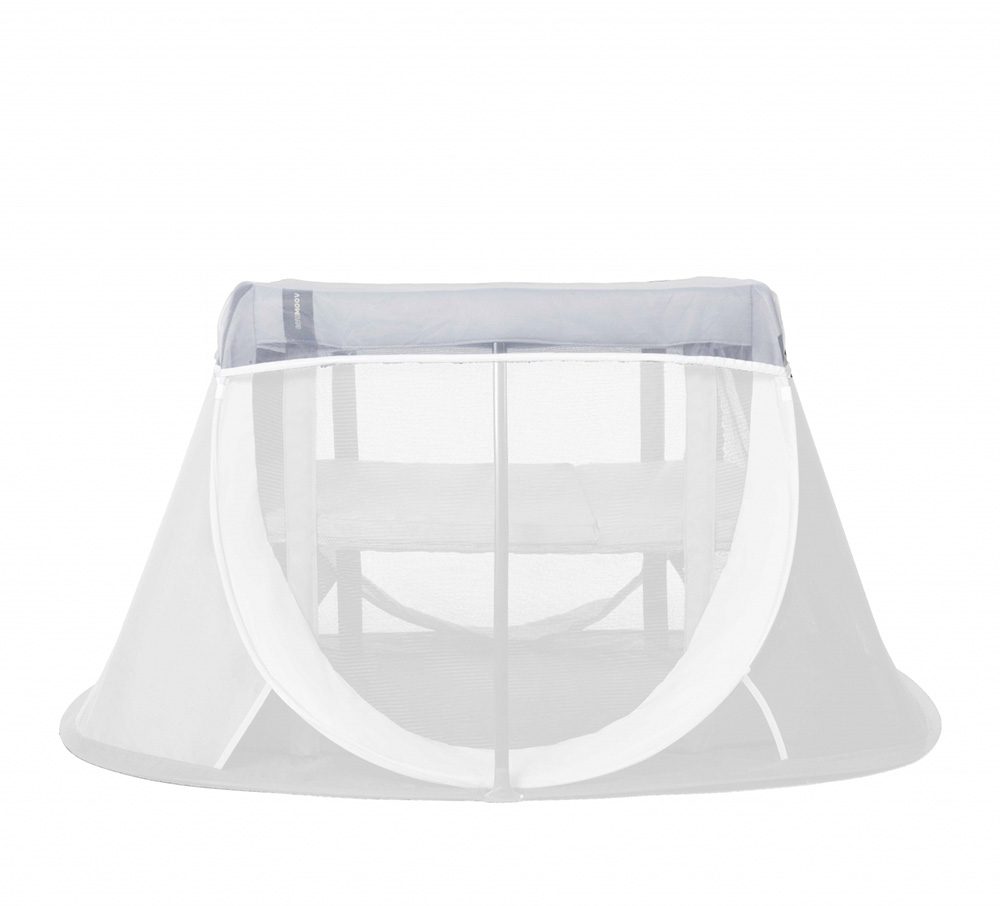 Praktiskt myggnät som fästs på toppen av resesängen.