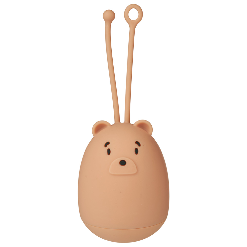 - Tänd lampan genom att trycka ovanpå björnens huvud (mellan öglan till hänget)