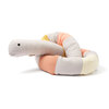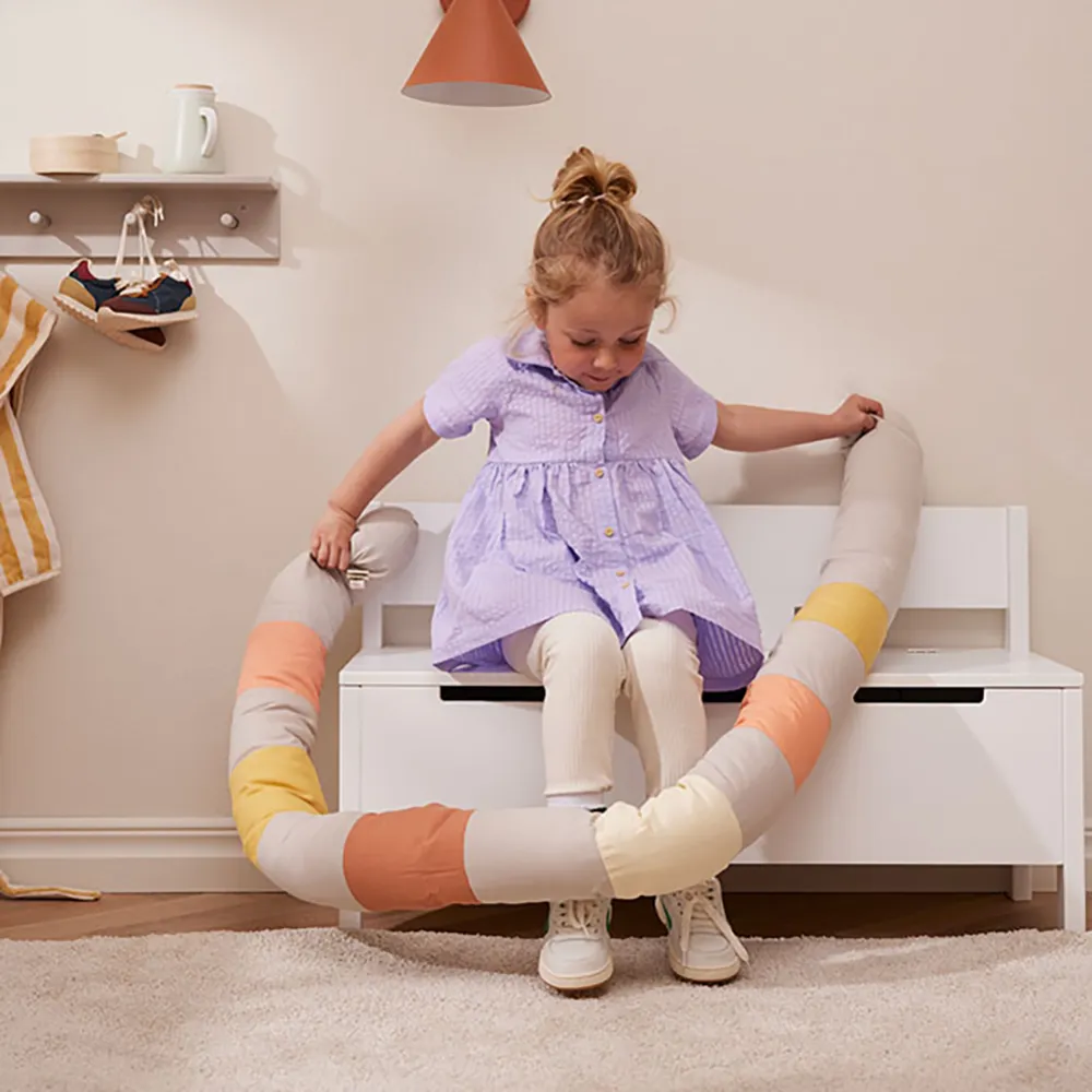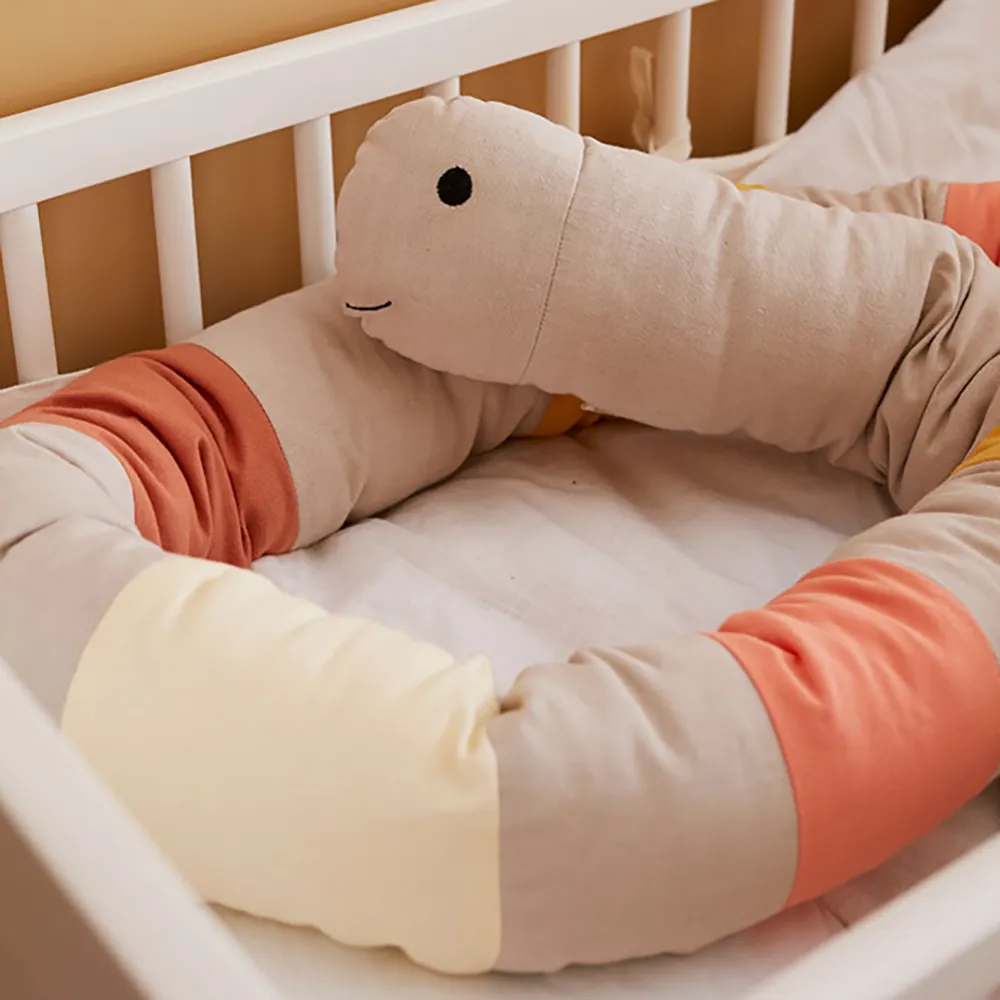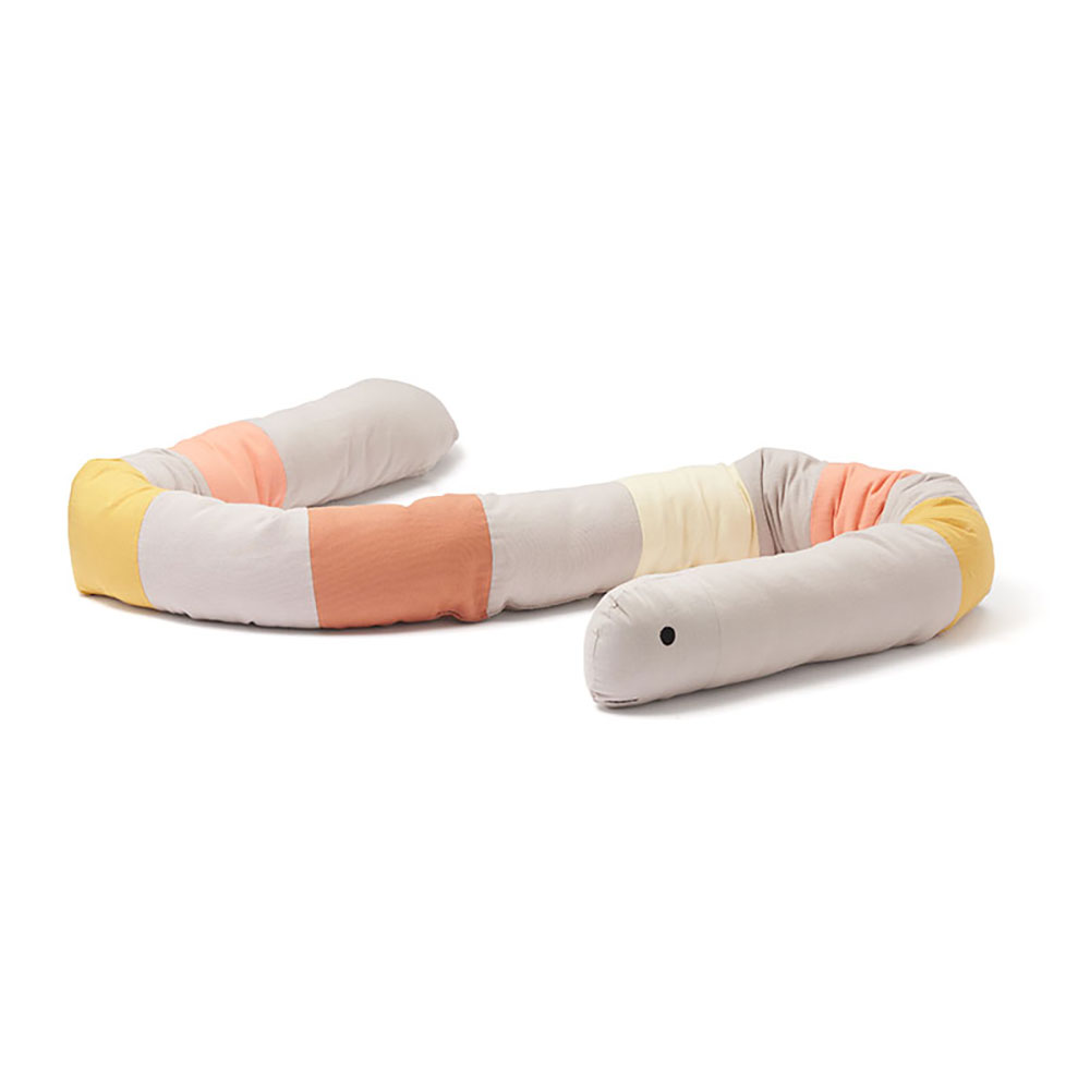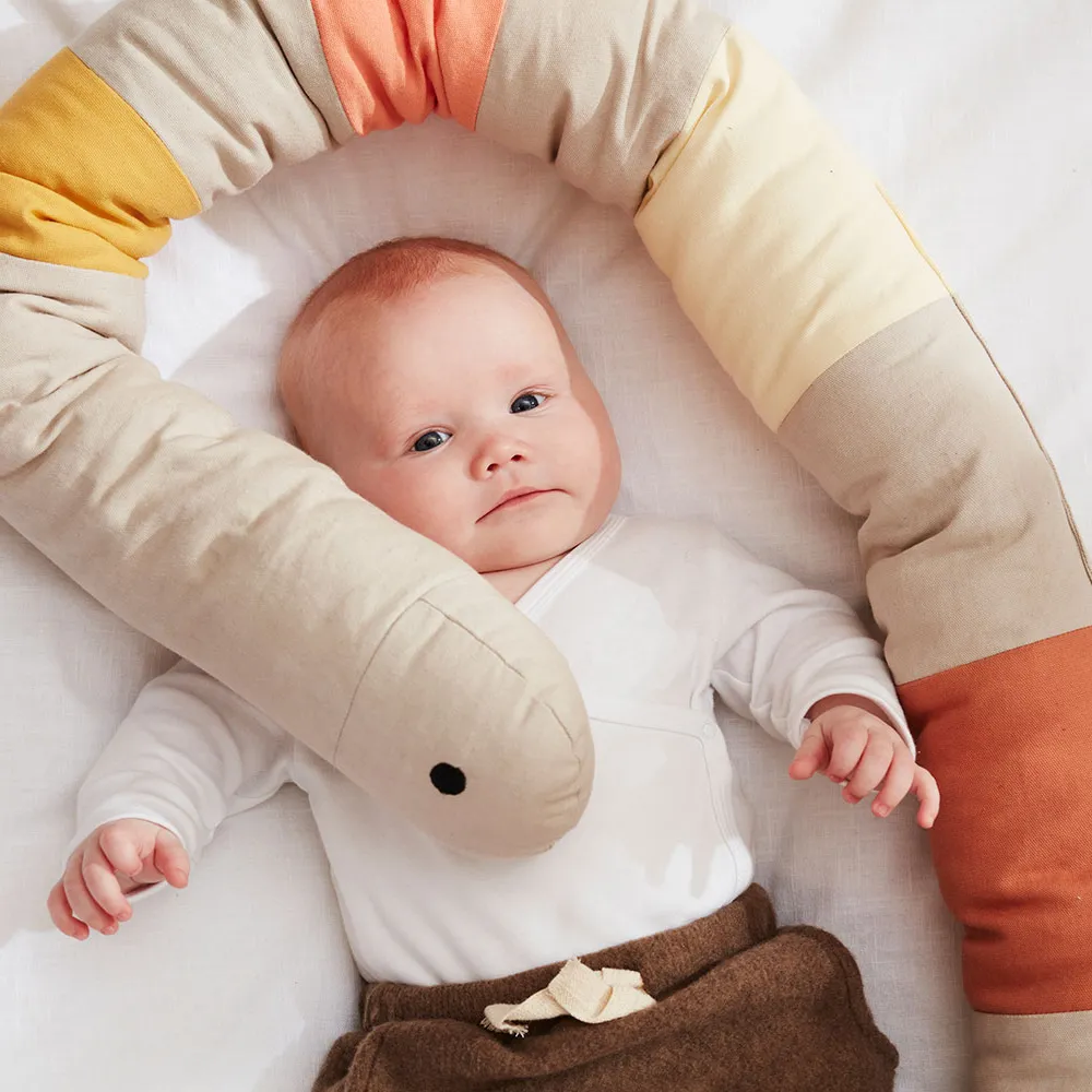 Den här gosiga, långa kudden har många användningsområden. Den fungerar både som en mjuk leksak och ett mångsidigt hjälpmedel. För mindre barn kan den placeras längs spjälsängen som en mjuk och trygg vaddering, vilket gör det mer ombonat. Kudden kan även användas som stöd under amning, flaskmatning, eller som en avlastande graviditetskudde i sängen. Den långa kudden kan formas i en cirkel eller på det sätt som passar bäst för tillfället. När barnet växer kan den bli en trygg och mysig kompis i soffan eller sängen. Den är också perfekt som skydd och stöd när barnet övergår till en större säng, samt när barnet somnar i bilen.