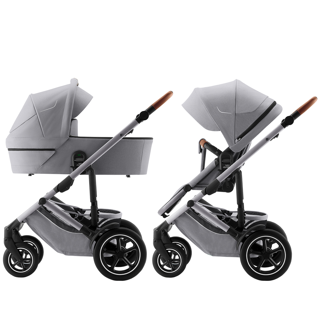 Nu ännu bättre än någonsin men uppdaterade hjul, bättre dämpning och ett stabilt chassi utan att tumma på funktionalitet och körupplevelse. Britax Smile 5Z ger extra bra förvaring med en stor varukorg, mjukare känsla på promenaden än någonsin och kan till och med fällas ihop med sittdel på åt båda hållen!