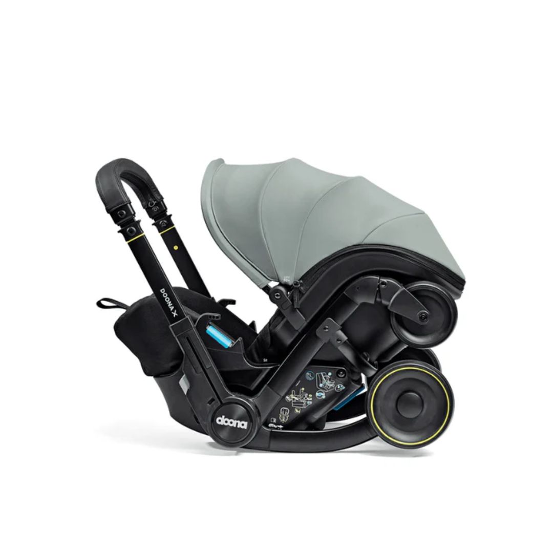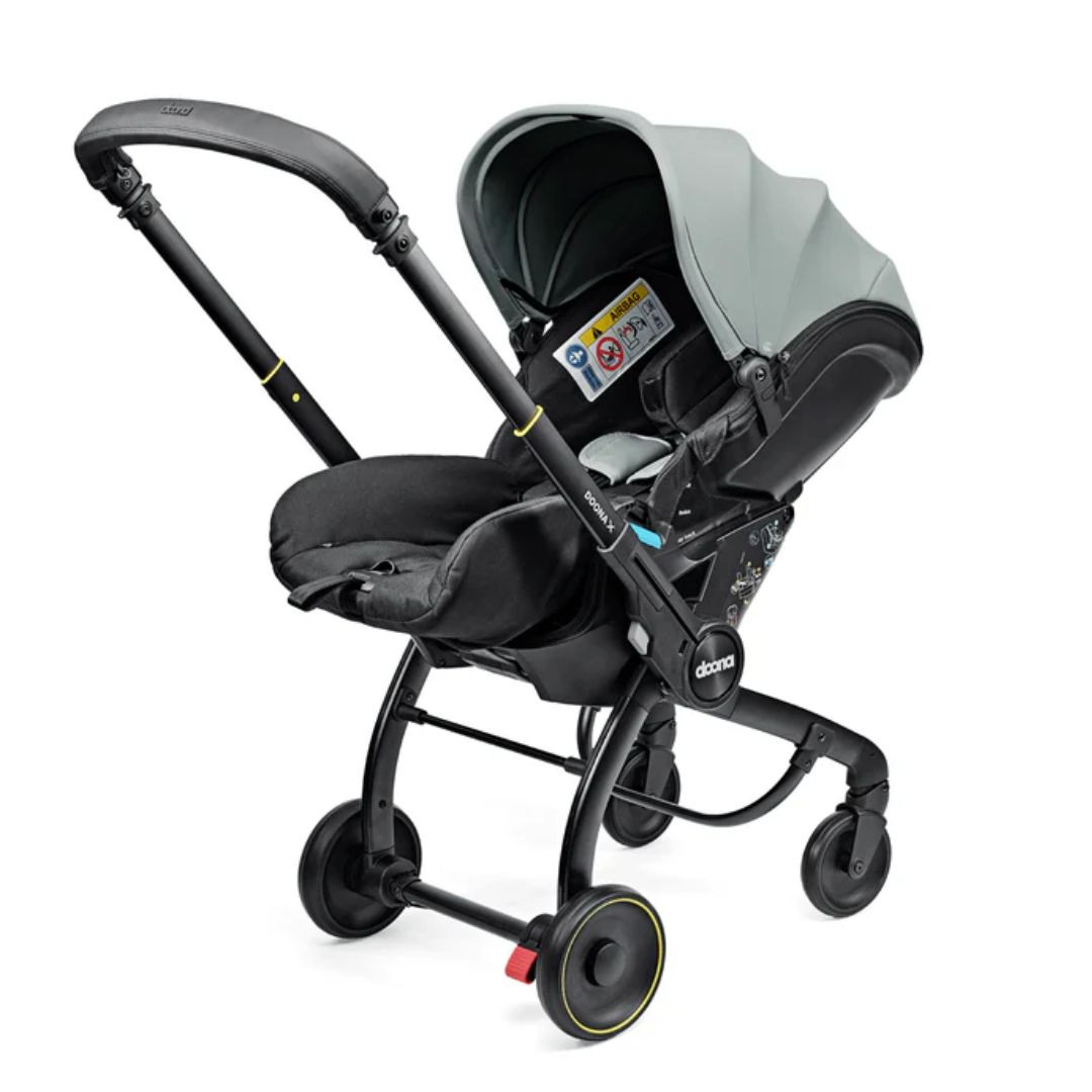 Doona X erbjuder en smidig lösning som gör att föräldrar inte längre behöver bära på tunga babyskydd. Samtidigt frigörs utrymme i bilens bagageutrymme då man inte alltid behöver eller vill ta med sig barnvagnen. Den smarta och snygga designen gör att du enkelt kan navigera på gatorna utan att störa ditt sovande barn när du hoppar in i bilen, reser med buss eller går i trappor.