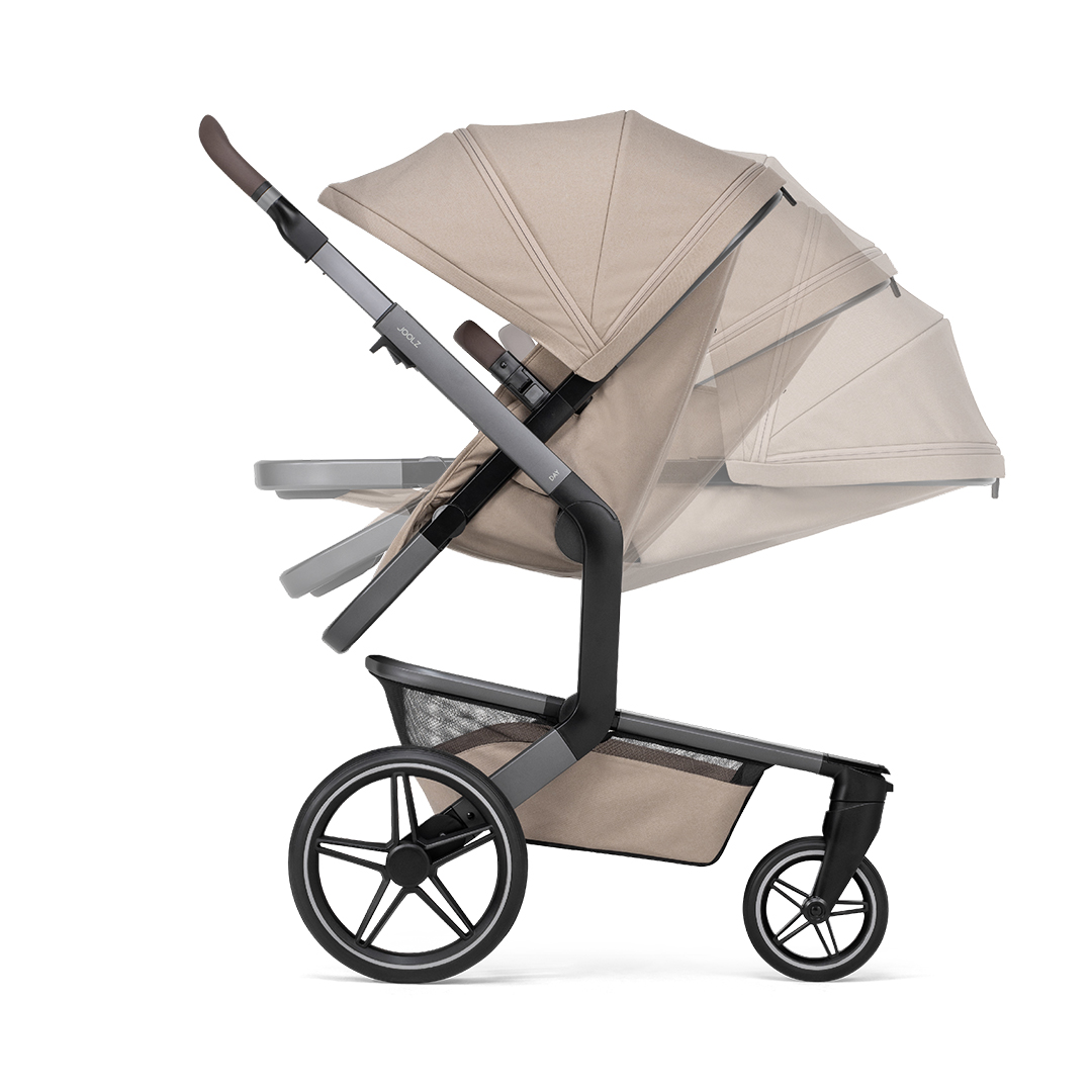 Det som verkligen särskiljer Joolz Day5 är dess unika och ergonomiska sittdel. Den kan enkelt justeras från sittande läge till ett fullt liggläge, vilket ger ditt barn optimal komfort. Sittdelen är noggrant utformad för att stödja barnets rygg och har sex olika positioner, både framåt och bakåtlutande, så att ditt barn kan sitta bekvämt eller ta en paus närhelst det behövs.