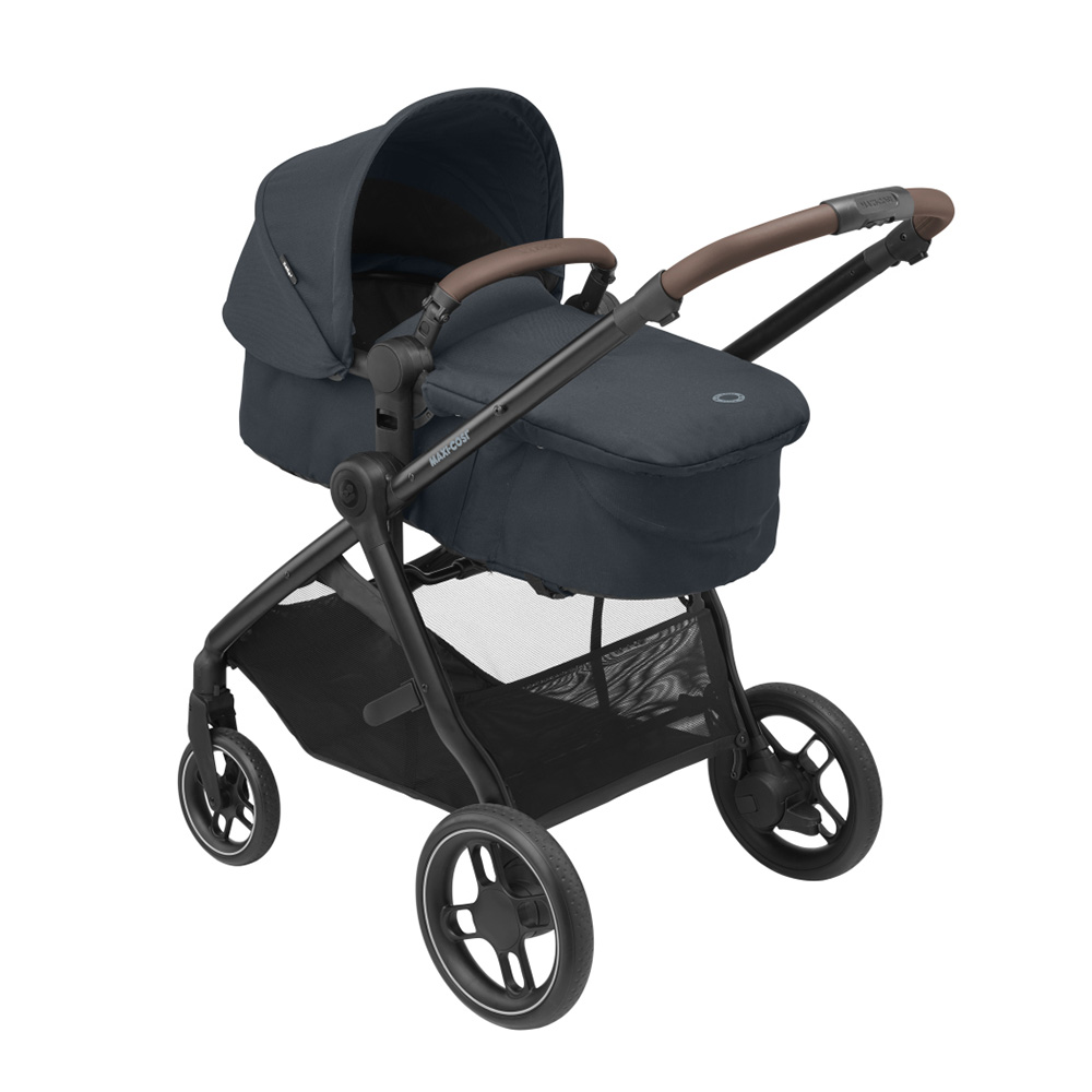 Zelia är lämplig från nyfödd upp till 3,5 år och kommer med en exceptionellt lätt och kompakt design, utan att ge avkall på ditt barns komfort. Barnvagnens sittdel kan enkelt omvandlas till en liggdel som ger extra komfort för din nyfödda, och föräldrar kommer att älska det smidiga fällsystemet. Med bara två klick fäster du sittdelen på vagnen, som är anpassad för barn från nyfödd till 3,5 år. Zelia kan snabbt byta från att användas på gatan till att användas i bilen genom att fästa en kompatibel Maxi-Cosi Group 0+ babyskyddsstol. Dessutom har vi designat en stor och praktisk varukorg så att den ultrakompakta barnvagnen passar perfekt för livet i staden och gör det möjligt att förvara allt som ditt barn behöver för en dag av utforskande!