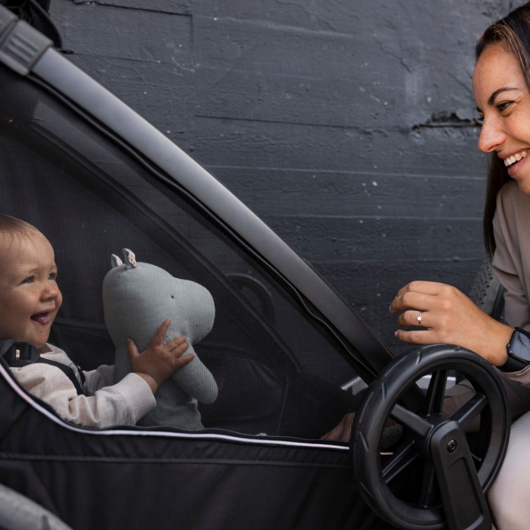 De erbjuder också en lång lista av tillbehör och hela kit som du kan köpa till för att anpassa din vagn efter dina och ditt barns behov. Den sportiga grundmodellen gör att din vagn blir ett uppskattat inslag i ditt aktiva liv. Du kan till exempel köpa till en bärstol i ryggsäcksformat, så att du kan gå på upptäcktsfärd i mer otillgängliga miljöer och ditt lilla barn sitter tryggt på din rygg.