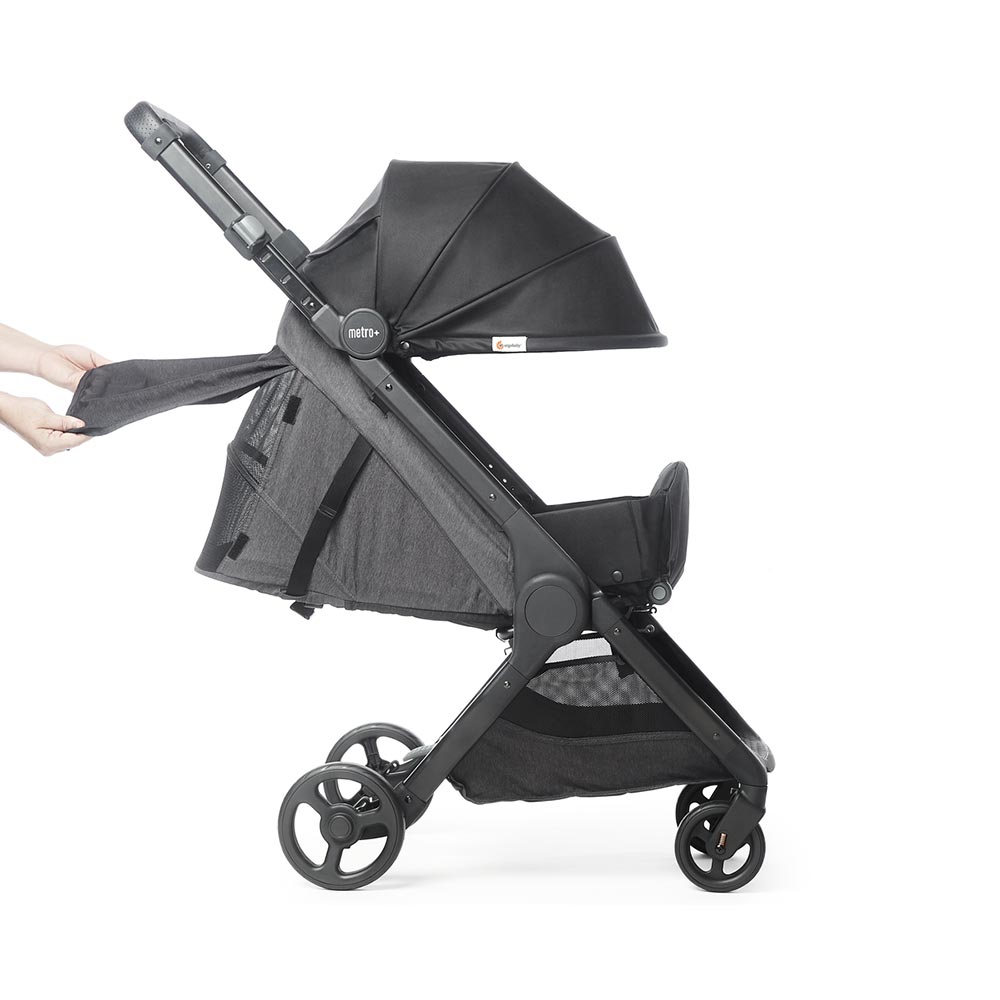 Metro+ har en extra skön ergonomisk sittdel och justerbart handtag som kan ställas in för både långa och korta. Hopfällningen är lika enkel som på föregångaren och blir väldigt liten och kompakt. Sittdelen har fullt liggläge med en generös sufflett som skyddar mot solens strålar då den är UPF50+ i solskyddsfaktor.