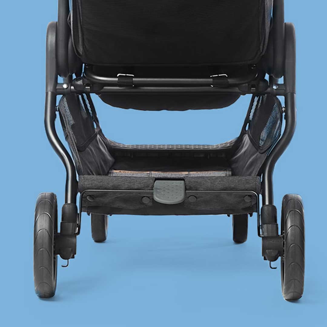 Metro Deluxe bygger vidare på Metro+ genom att lägga till extra vaddering, justerbar läderimitation på handtaget, cup‑ och supportbar samt 22 % större varukorg. Premiummaterial och near‑flat recline gör den till en bekväm följeslagare för både vardag och resa.