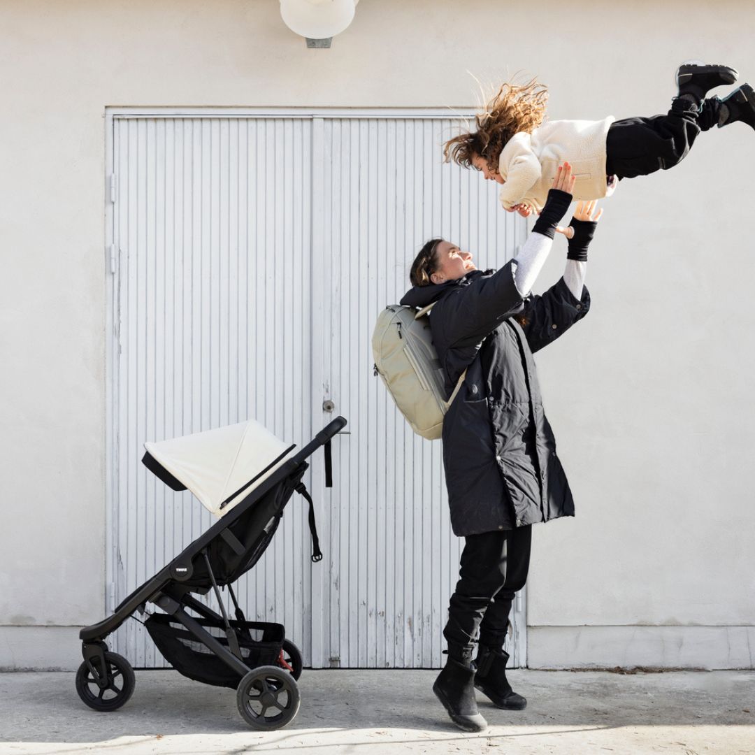Thule Spring är en smidig sittvagn som är snabb och enkel att fälla ihop. Den kan fällas ihop med en hand och blir väldigt liten och smidig och kommer in i de flesta utrymmen. Kan även förbli ståendes vid förvaring.