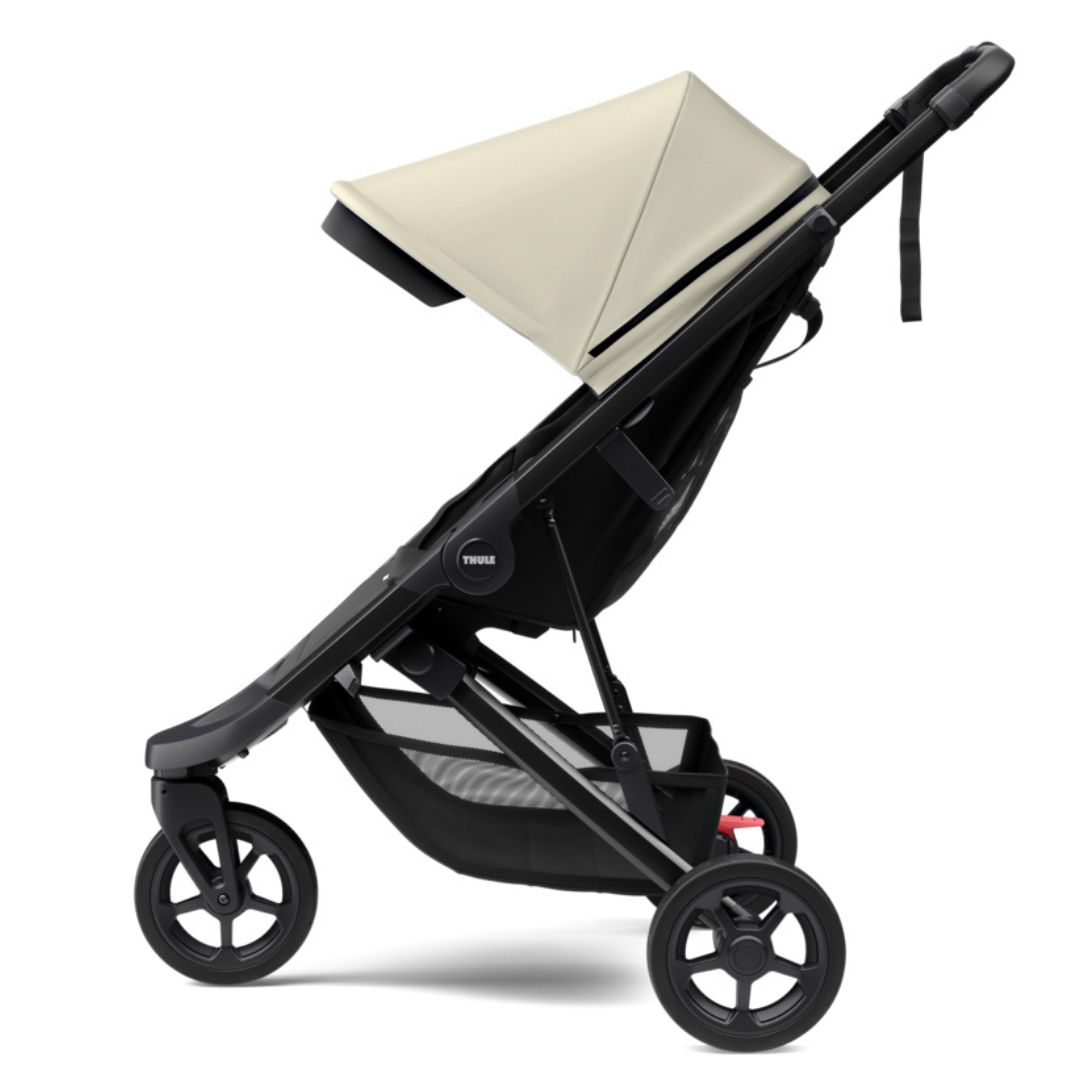 Fotstödets form medför en enkelhet för äldre barn att på ett enkelt sätt klättra i och ur vagnen själva. Hjulen på Thule Spring är punkteringsfria och skumfyllda vilket ger en mjukare körning, även på tuffare underlag.