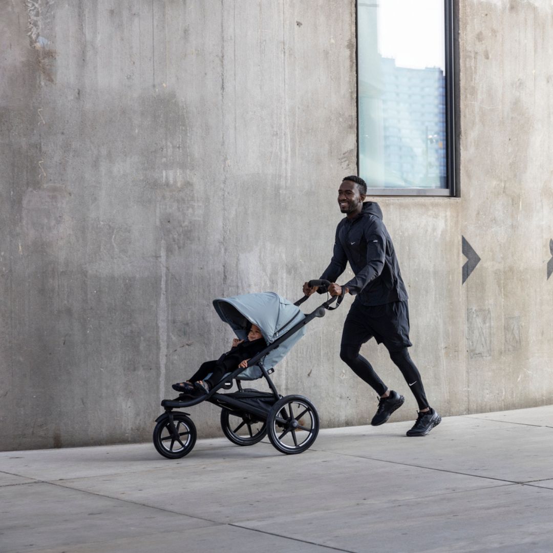 Thule Urban Glide3 joggingvagn är lätt att manövrera tack vare sin låga vikt, de stora luftfyllda hjulen på 16 tum och det svängbara framhjulet.