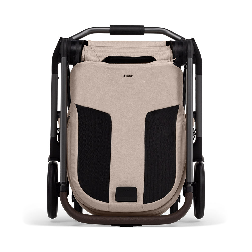 Chassit är utrustat med fjädring på alla hjul, vilket ger en mjuk och bekväm åktur. Ett integrerat fotstöd i chassits främre del ger extra komfort för större barn, och den rymliga varukorgen har en maxvikt på 10 kg, vilket gör att du kan få med dig allt du behöver under promenaden. För extra smidighet finns en inbyggd bärrem du kan dra över axeln som underlättar transporten av vagnen. Sittdelen har ett helt plant liggläge och meshtyg i sitsen för bättre ventilation under varma dagar. Under vintertid används den medföljande dynan för att hålla barnet varmt. Sittdelen är utrustad med en lång, expanderbar sufflett och en swing-away bygel för enkel åtkomst. Femdelad sele med axelmuddar och ett högt ryggstöd (54 cm) ger extra komfort för längre barn. Vagnen kan fällas ihop med sittdelen monterad, även när sittdelen är vänd mot dig.