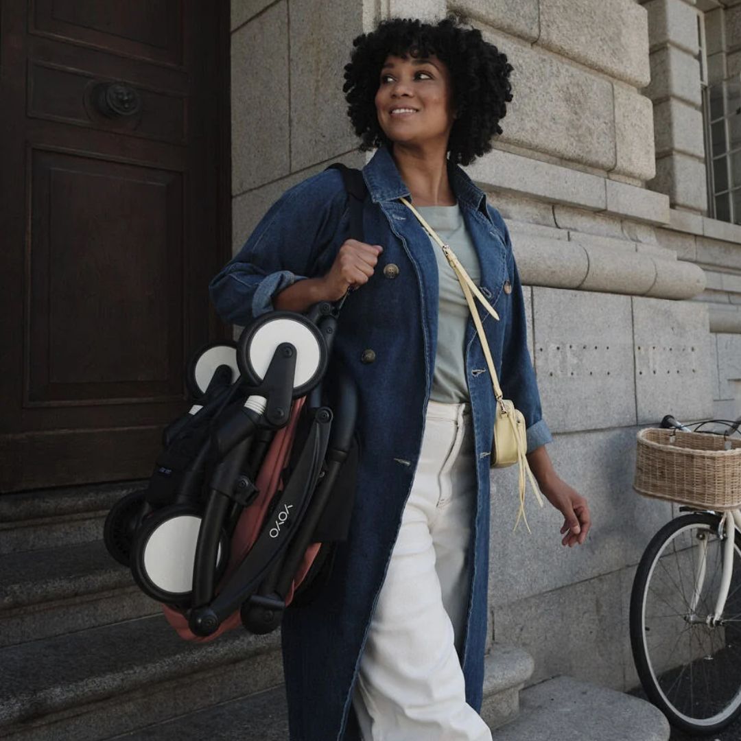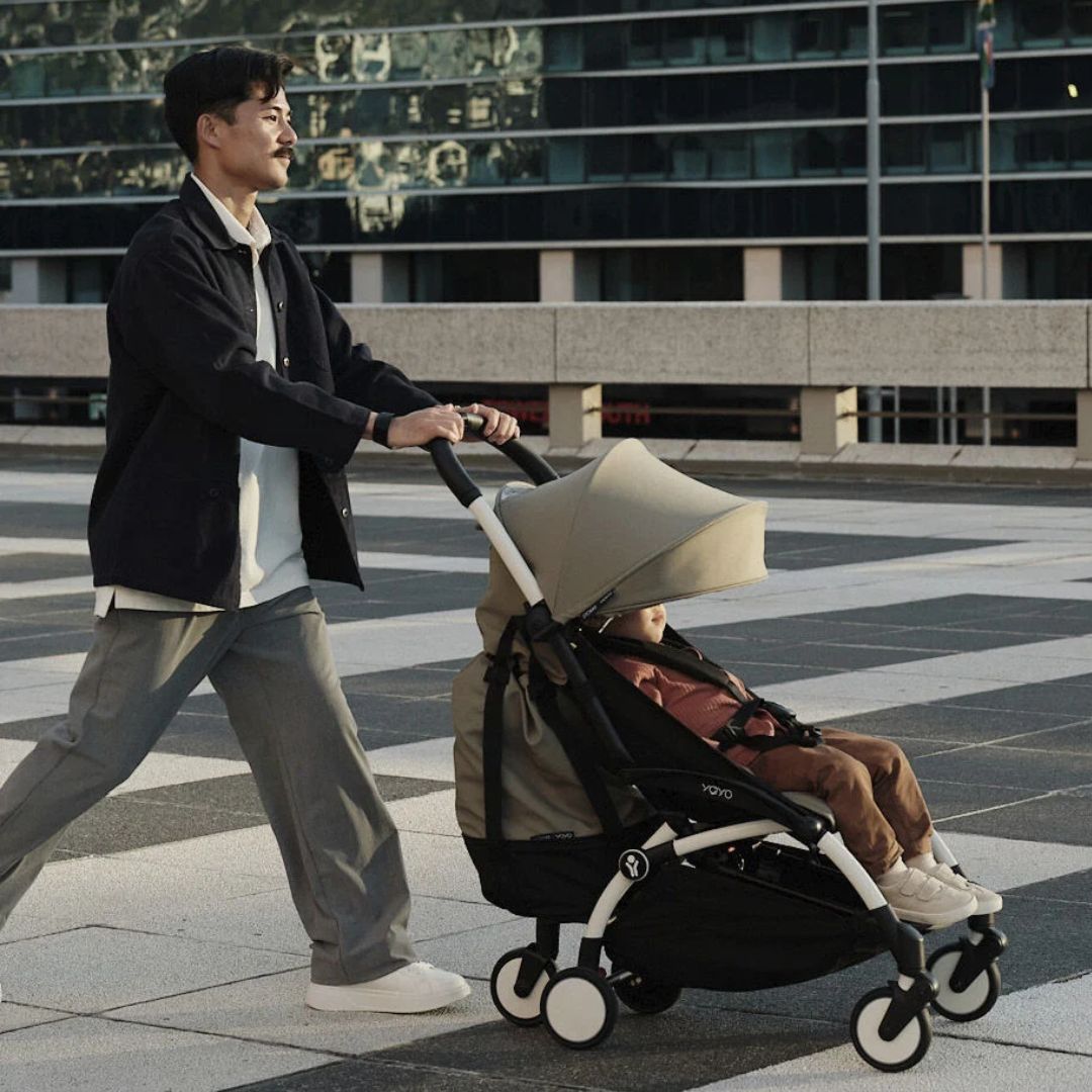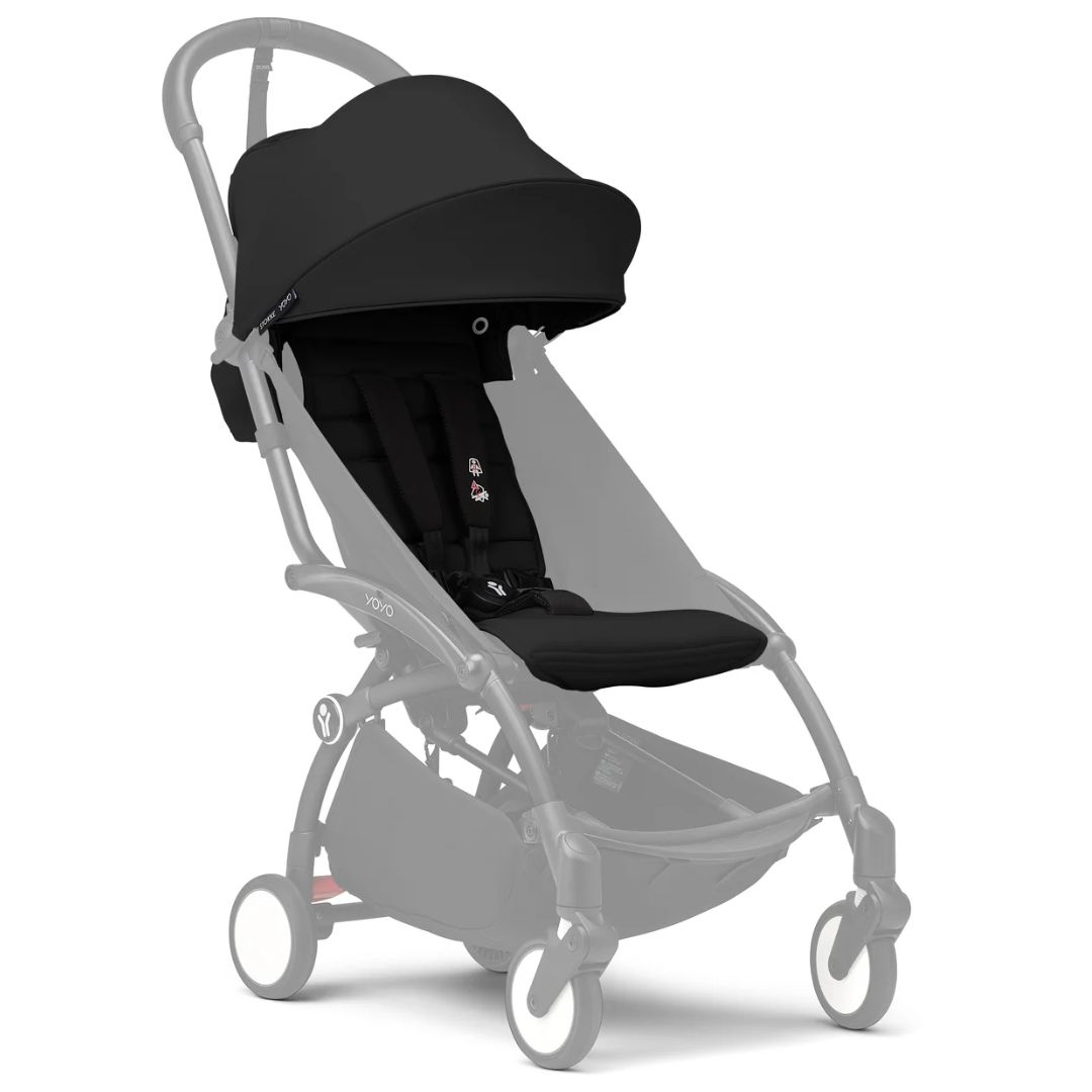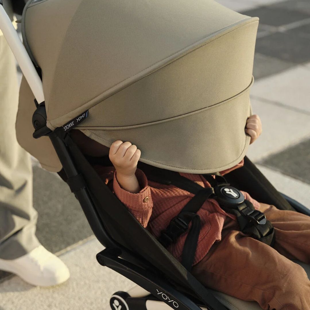 Vagnen är hopfällbar tillsammans med YOYO³-chassit, och när den är hopfälld uppfyller den handbagagemått* för de flesta flygbolag. Den utdragbara suffletten har UV-skydd och ett stängningsbart ventilationsfönster för optimal komfort. Sittdynan har en ny design med förbättrad kudde och högre ryggstöd samt ett nätremsskydd för extra säkerhet. En praktisk bakficka med dragkedja ger plats för förvaring av småsaker, och det vattenavvisande UV-beständiga (UPF 50+) tyget skyddar mot väder och sol.