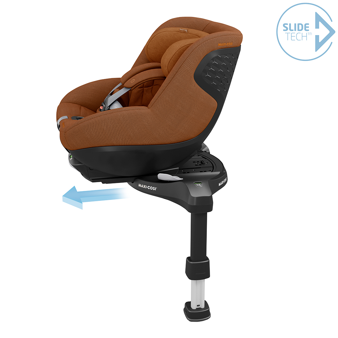 Med SlideTech roterar du stolen mot dig och drar ut den en bit ut från bilen så att du på ett väldigt enkelt sätt kan installera ditt barn, eller installera hela stolen på isofix basen. Du kan också väldigt enkelt kan avlägsna stolen från basen med denna funktion.