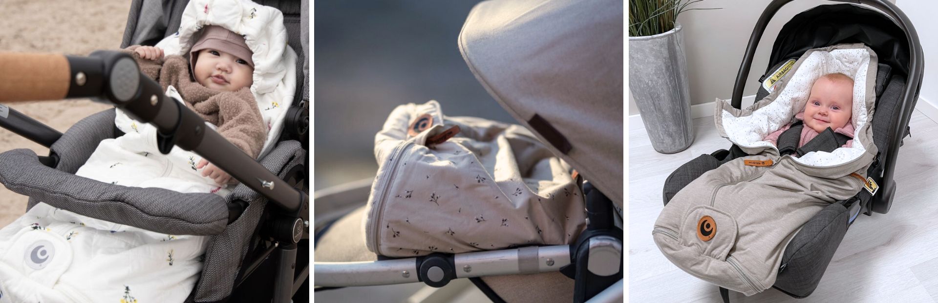 - Åkpåse/sovpåse för som kan anpassa sig i babyskydd: Använd en åkpåse som är specifikt designad för babyskydd. Det är viktigt att undvika tjocka ytterkläder på ditt barn när ni åker bil, då detta kan utgöra en säkerhetsrisk och påverka bilstolens funktion.