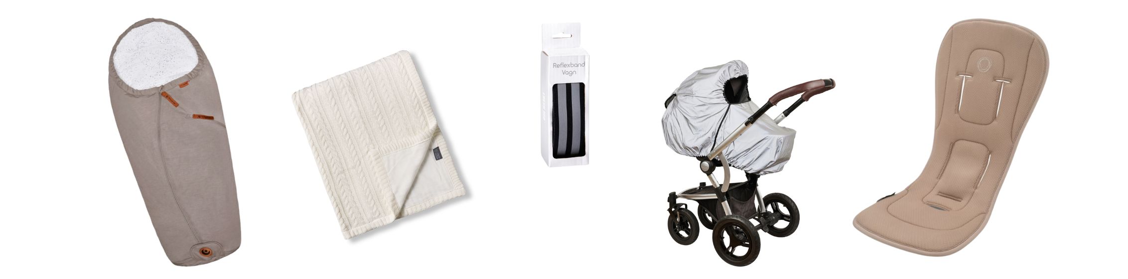 - Barnvagnshandskar: Håll dina egna händer varma med barnvagnshandskar som du fäster direkt på handtaget.