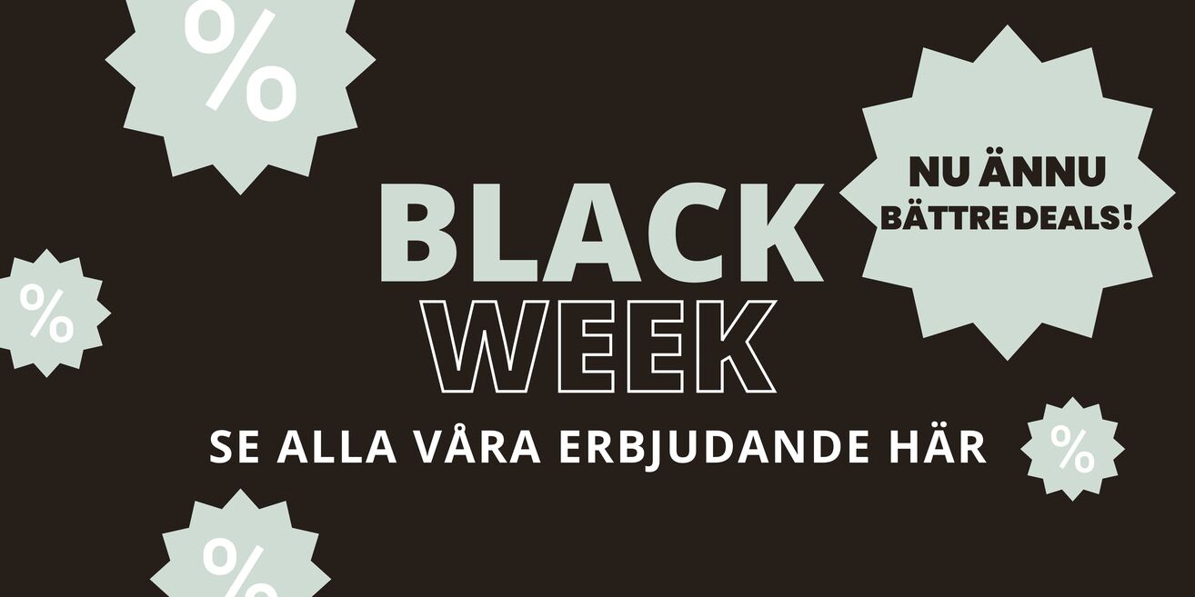 Vår Black Week är över för i år, men du är varmt välkommen att fortsätta fynda bland våra aktuella erbjudanden. Utforska sortimentet och hitta julklappar hos oss!